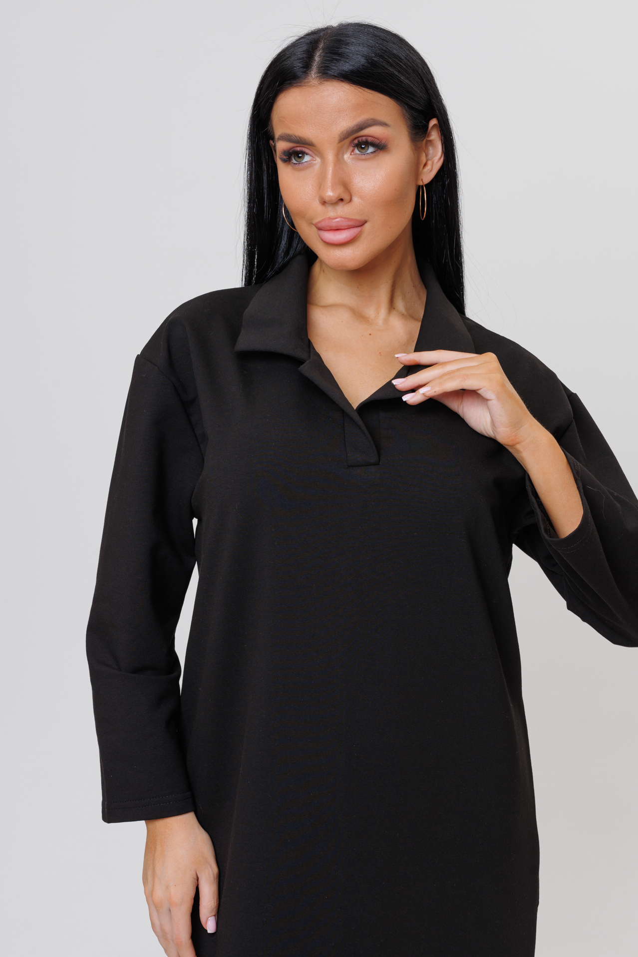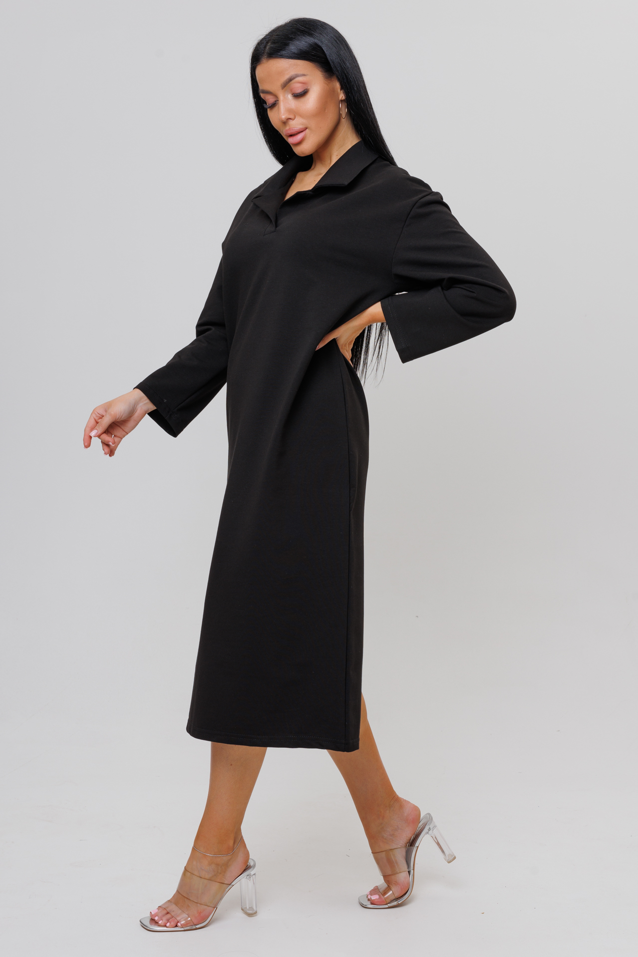 Особенный стиль этого платья подчеркивает поло воротник, создавая роскошный и расслабленый внешний вид.