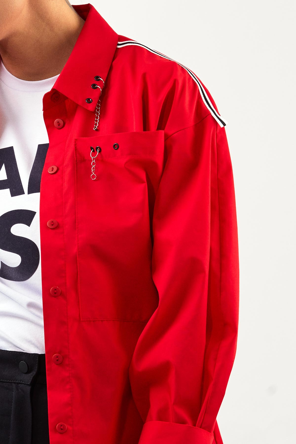 - на воротнике декор в виде люверсов и колец с цепочкой