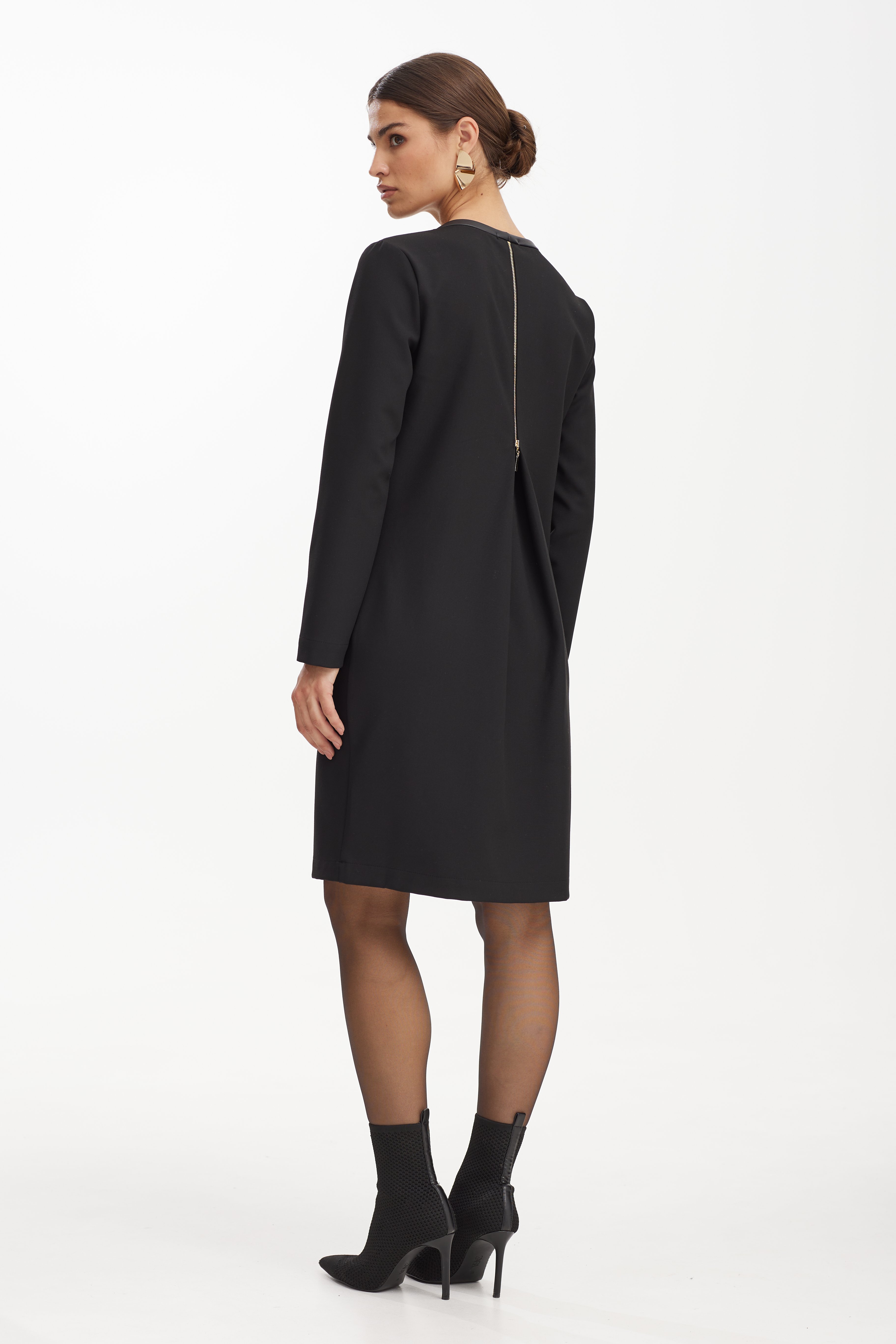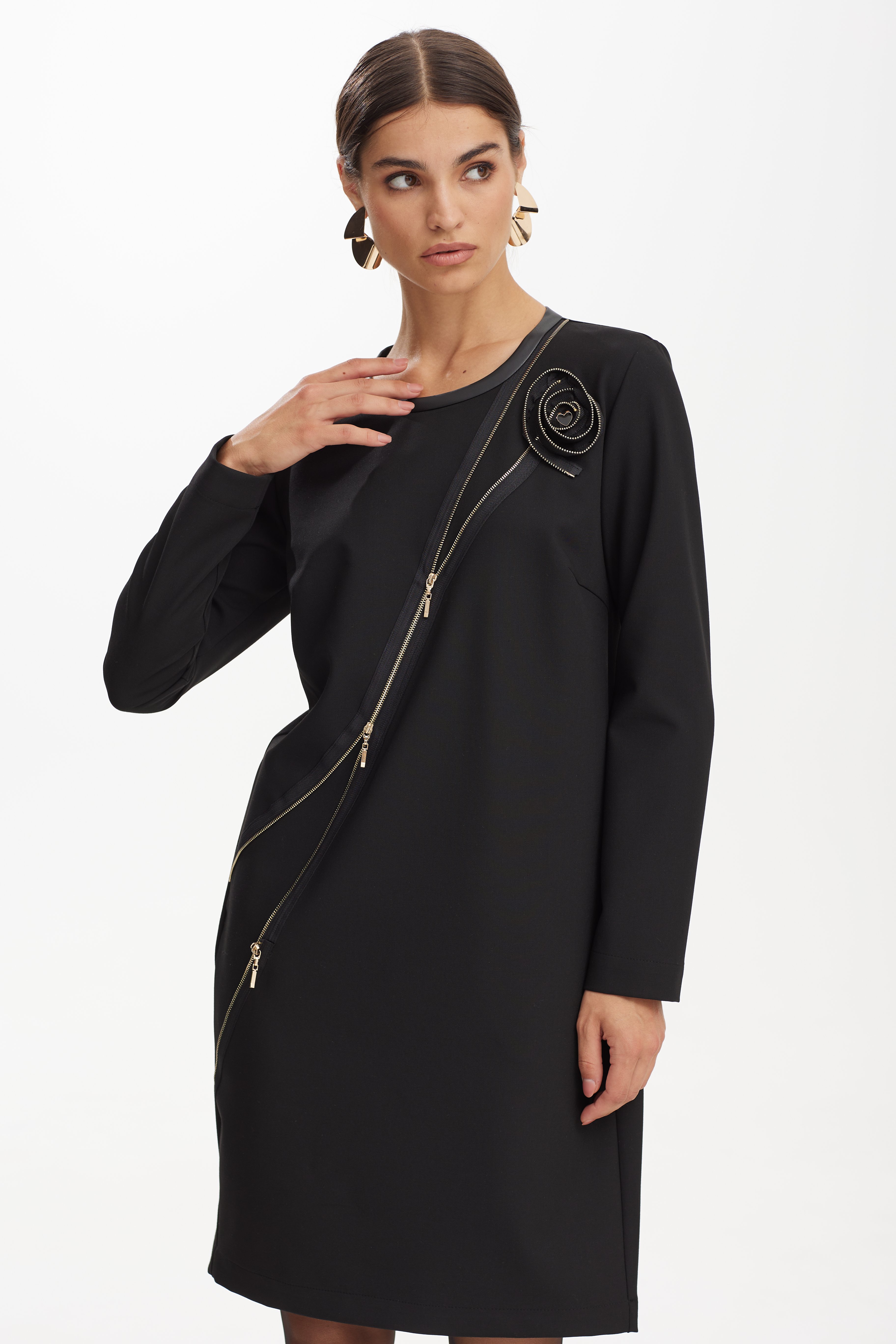 Платье 42-52 4250 Платье прямого покроя. Модель сочетает в себе женственность и удобство. Перед декорирован дизайнерской тесьмой . Горловина переда декорирована экокожей. По спинке платья складка, декорированная молнией.