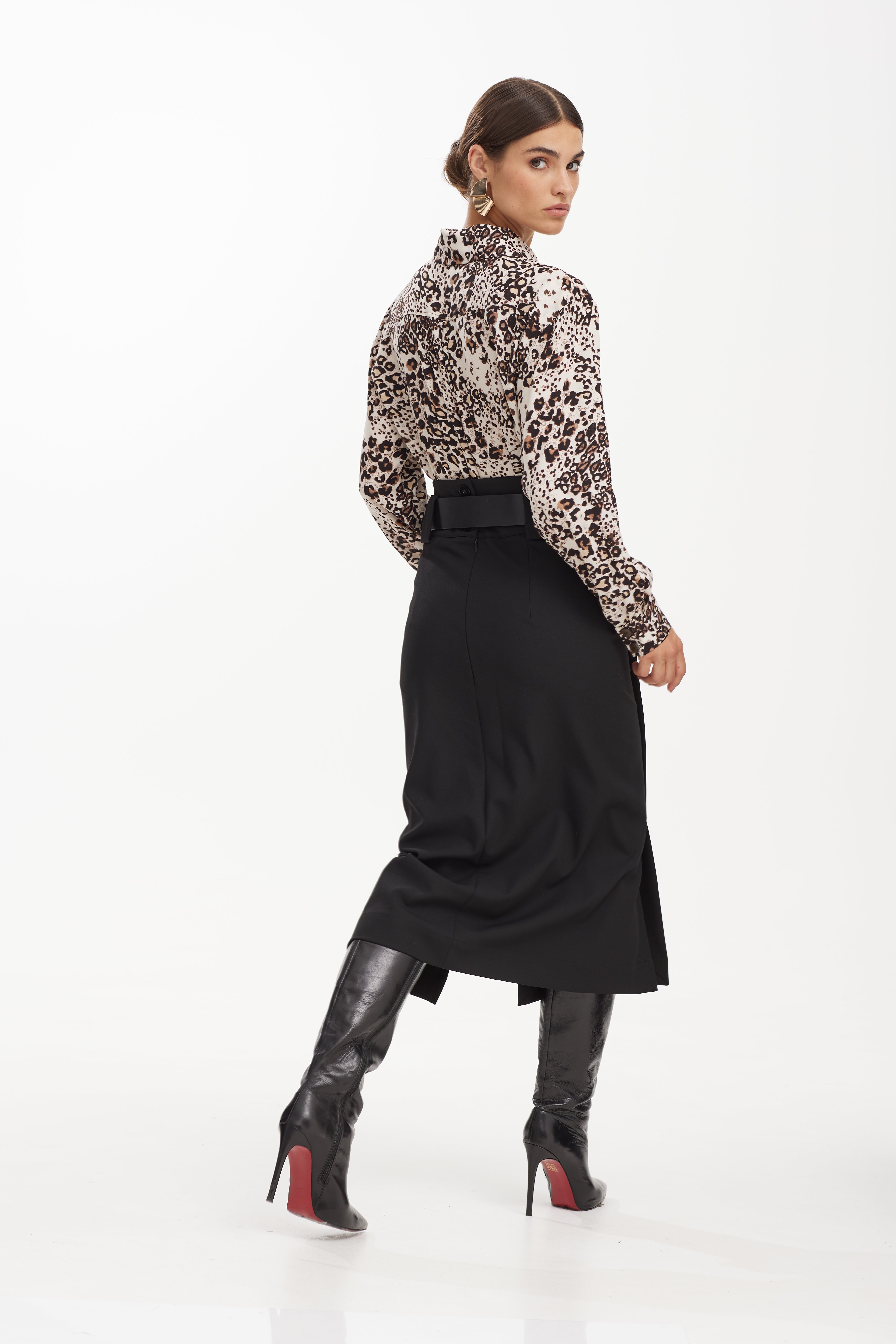 Юбка 42-52 3960 Стильная юбка женственной формы, длины миди. По переду и спинки юбки, кокетка с широкими шлевками, где можно одеть декоративный пояс. По переду юбки шлицы с отделочнными пуговицами. По среднему шву спинки функциональная застежка на петли и пуговиц