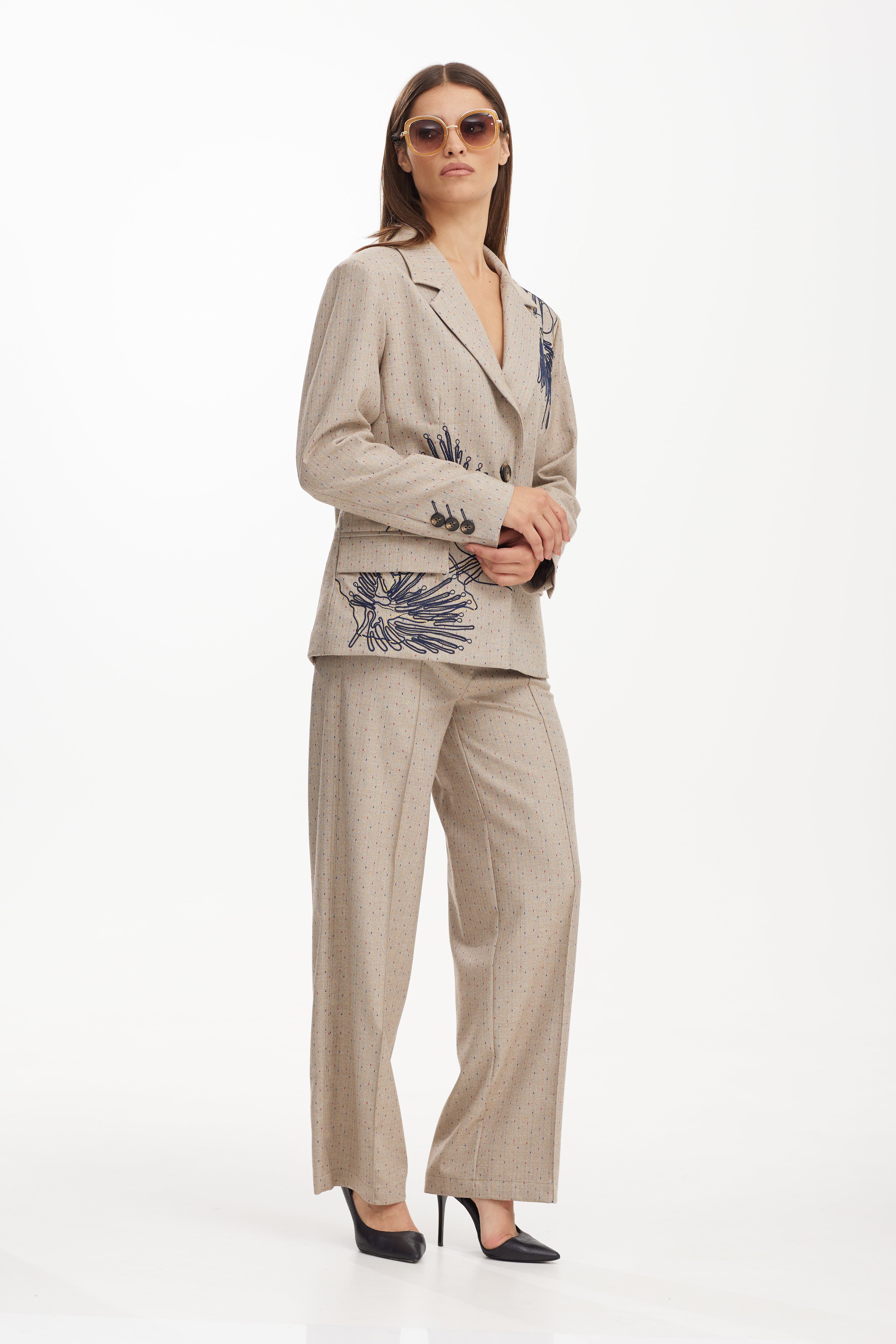 Жакет 42-52 4700 Дизайнерский жакет прямого силуэта. Жакет с втачным рукавом, с центральной застежкой на петли и пуговицы, удобными карманами. Жакет универсальной длины с воротником и лацканами. Перед жакета декорированы стильной дизайнерской вышивкой .