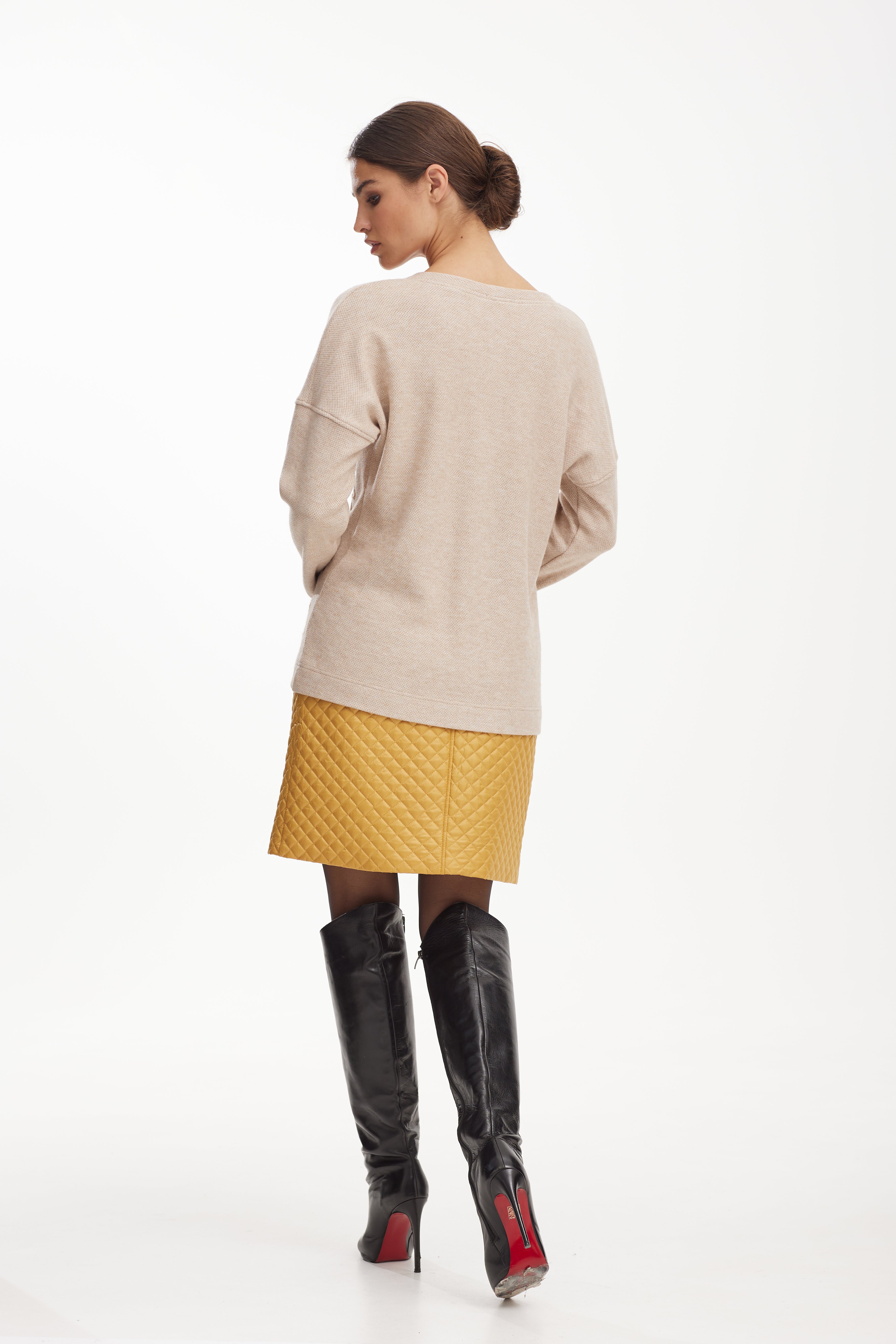 Юбка 42-50 3700 Стильная юбка женственной формы. По переду и спинке юбки пояс кокетка со шлевками, где можно одеть декоративный пояс. По переднему шву функциональная застежка на петли и пуговицы.