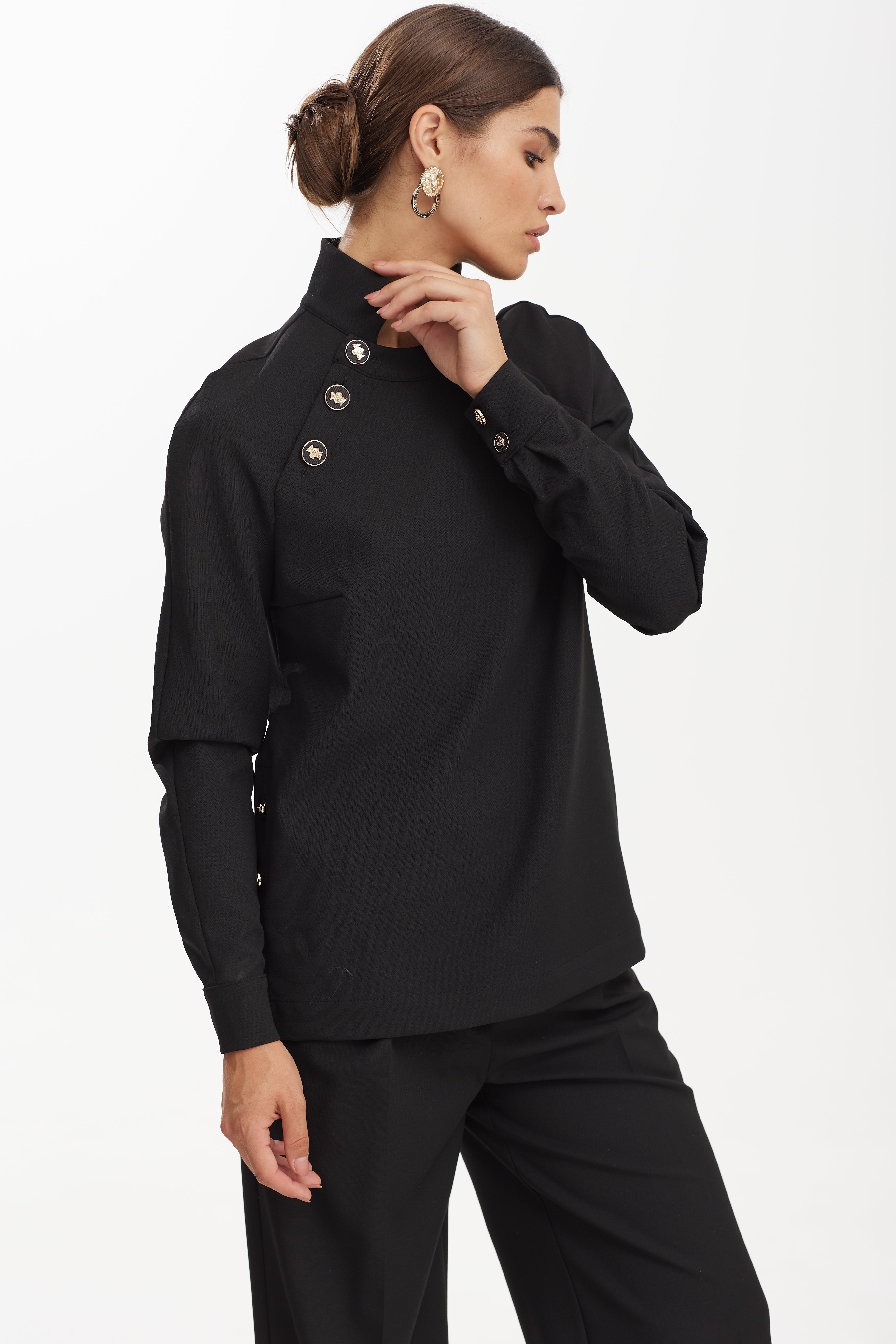 Джемпер 42-50 3900 Джемпер прямого покроя из костюмной ткани. Модель сочетает в себе женственность и удобство.. Горловина переда декорирована планками с дизайнерскими пуговицами.В боковых швах сделаны планки с дизайнерскими пуговицами.