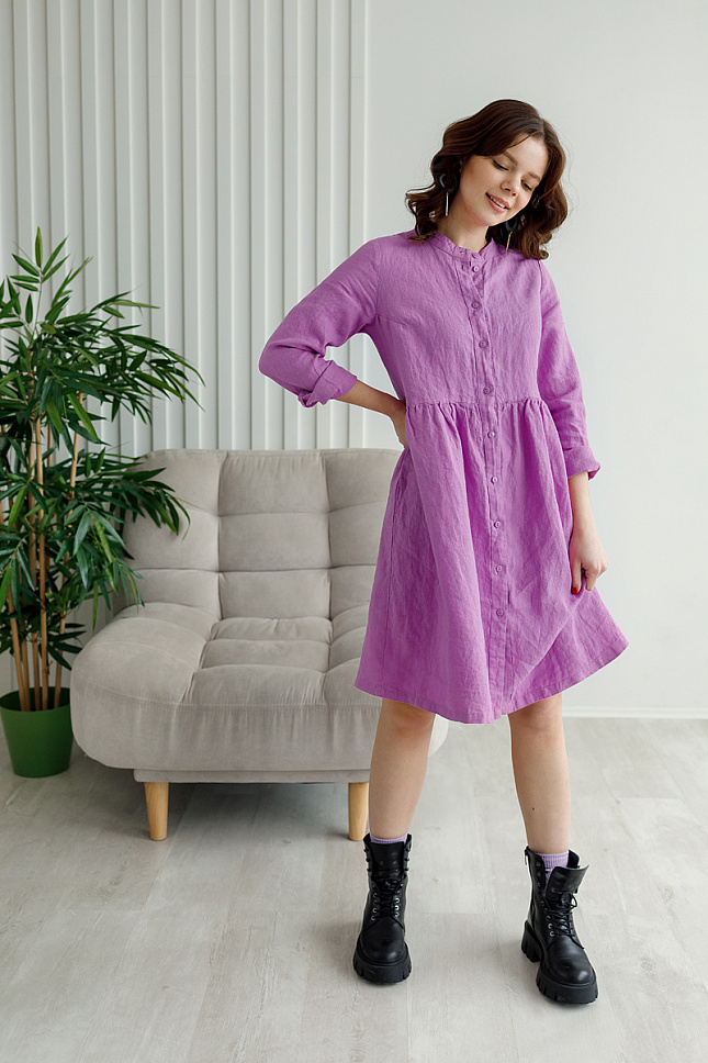 Платье в стиле бэби долл привлекают к себе внимание, благодаря своему очарованию, кокетству и женственности. В них нет вульгарности. Такой моделью платья можно прекрасно подчеркнуть изящную фигуру. Присмотритесь к представленной модели, возможно оно разработано именно для вас! Очарование укороченного силуэта позволит продемонстрировать красоту женских ножек «во всей красе». И обувь не останется без внимания. Это платье позволяет самые разнообразные сочетания. Благодаря завышенной линии талии вы с лёгкостью замаскируете все несовершенства фигуры. Мелкая присборенность по шву соединения лифа и юбки и создаёт тот самый кукольный образ. Этой задумке подчинён и укороченный рукав. Весьма мило выглядит планка – застёжка на череду пуговиц и воротник- стойка. В этом платье вы сможете комфортно себя чувствовать в любых ситуациях и обстоятельствах. Стильный внешний вид обеспечен жатой текстурой натурального льна, которую невозможно спутать ни с чем другим.