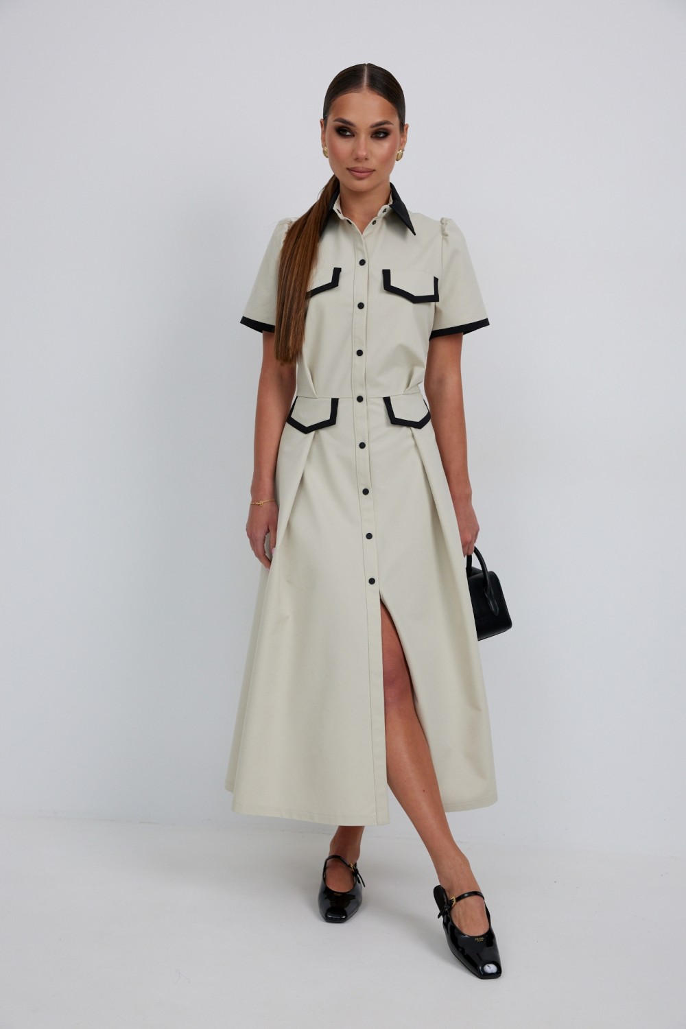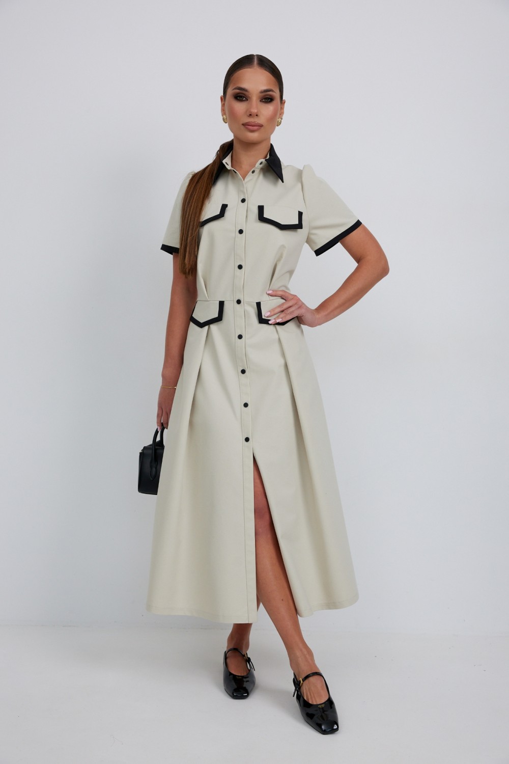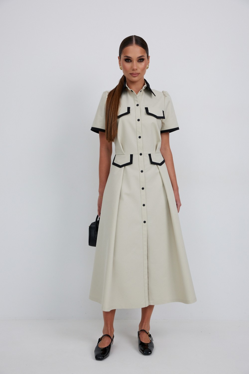 часть платья с карманами в боковых швах и встречными складками по талии. По переду планка с
