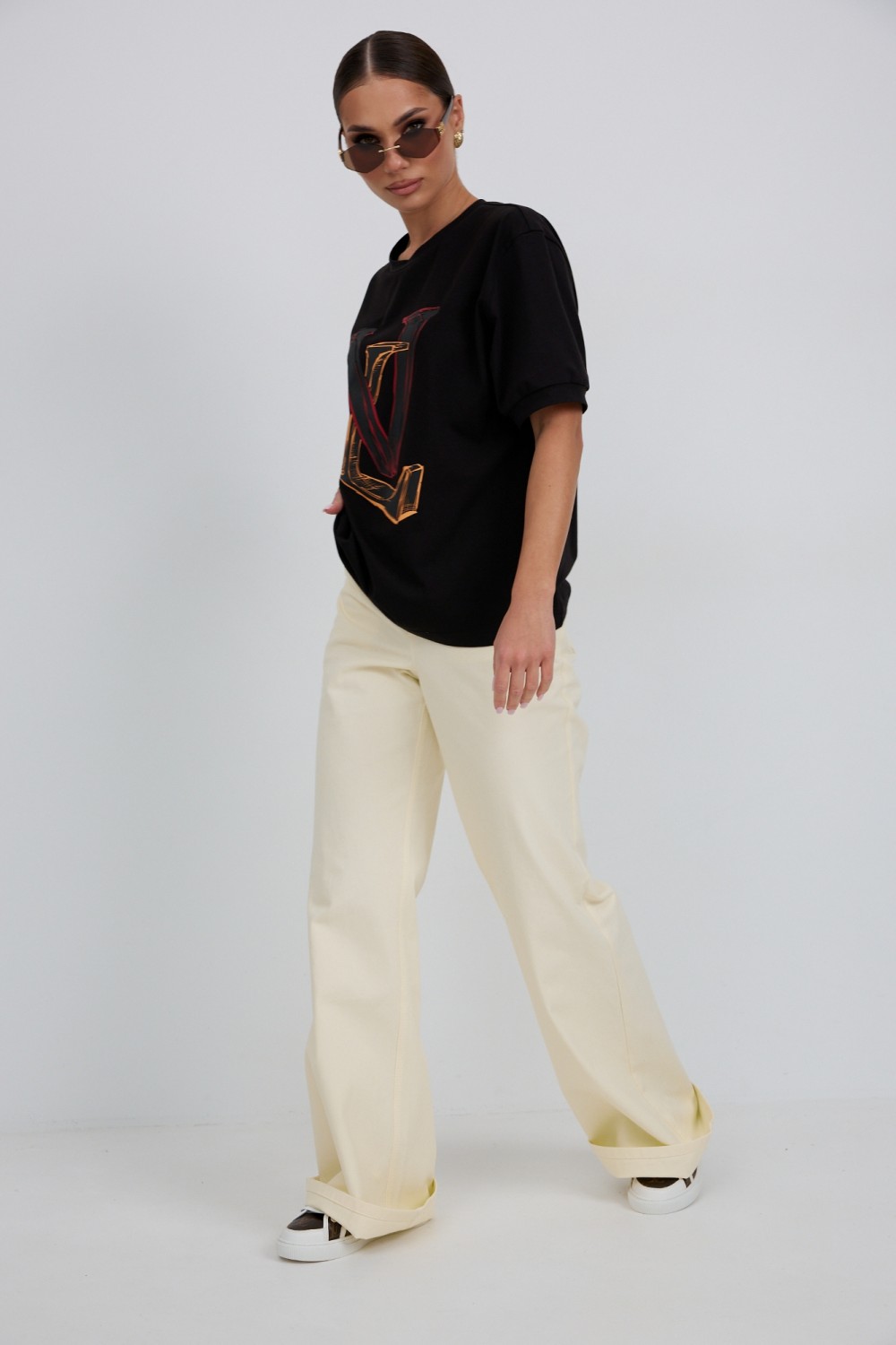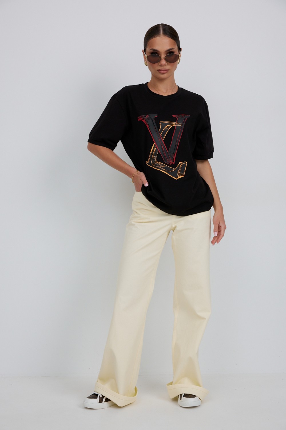 95 % хлопок, 5 % эластан Джемпер прямого силуэта из трикотажного полотна. Горловина круглой формы с бейкой. Расширенная линия плеча. Рукав короткий по низу с манжетой. Перед декорирован печатью.