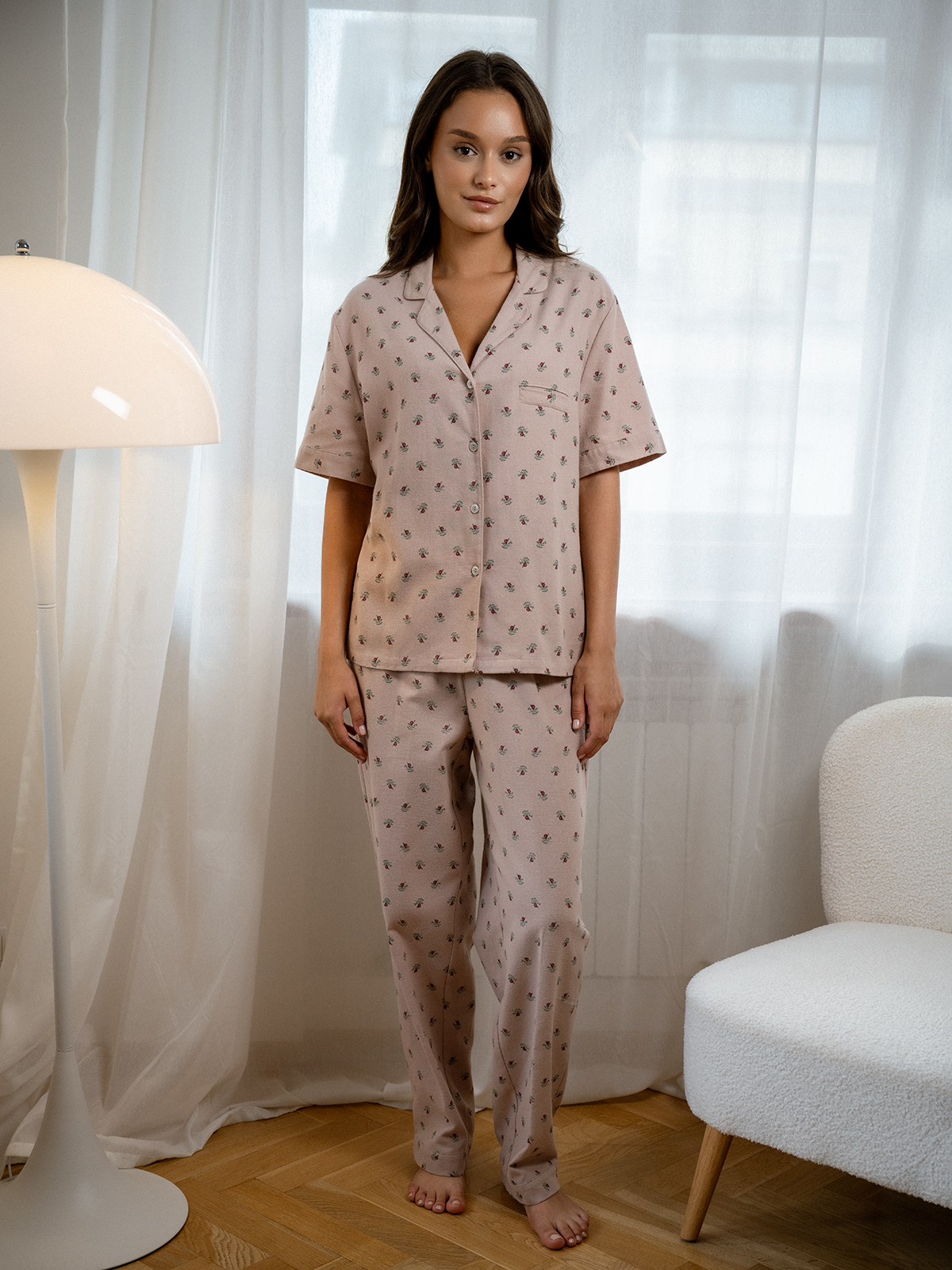 Костюм женский 5187TBC бренда Indefini изготовлен из хлопка.