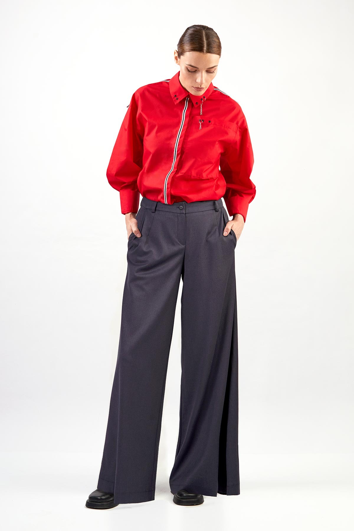 - застёжка спереди: молния и пуговица