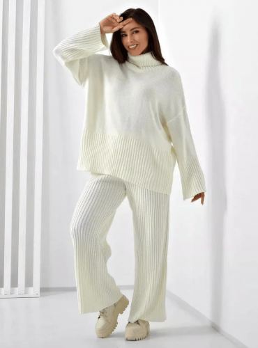 Нежная классическая вязка. Полная длина штанов, обьемная кофточка со строчечкой. Самые универсальные образы.