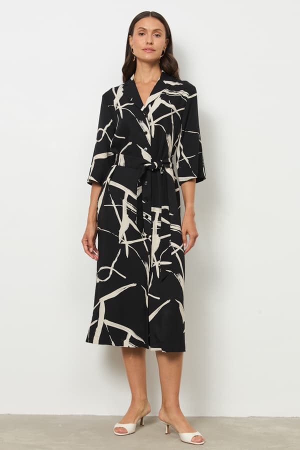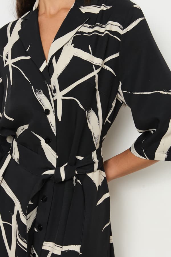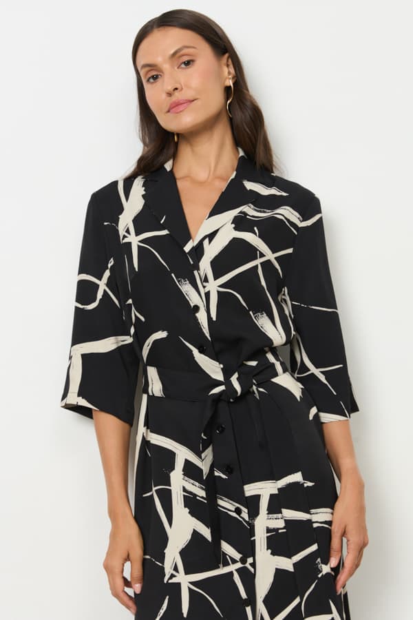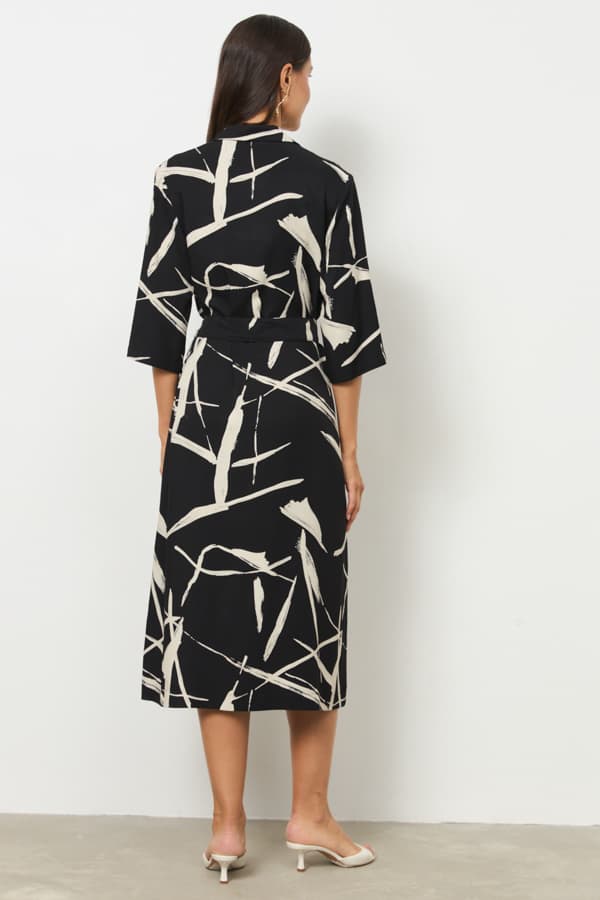 Платье из вискозной плательной ткани прямого силуэта с застёжкой на пуговицы. Втачной короткий рукав. Вырез горловины оформлен английским воротником, который визуально сделает фигуру стройнее и подчеркнет красивую линию груди. В комплекте пояс из основной ткани.