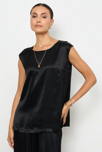 Брюки из вискозной ткани с сатиновым блеском, свободного силуэта. Пояс с эластичной резинкой и кулиской, в боковых швах - карманы.