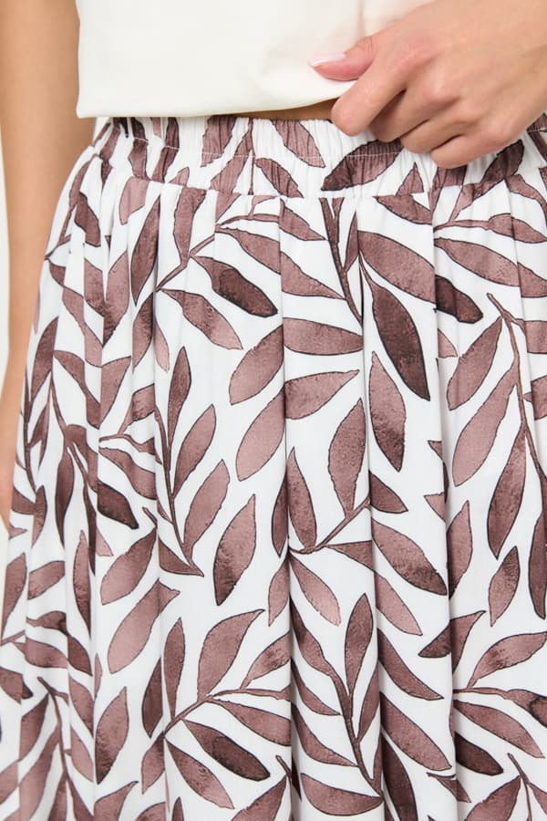 Юбка из вискозной ткани свободного силуэта со складками по линии талии. Пояс с эластичной резинкой.