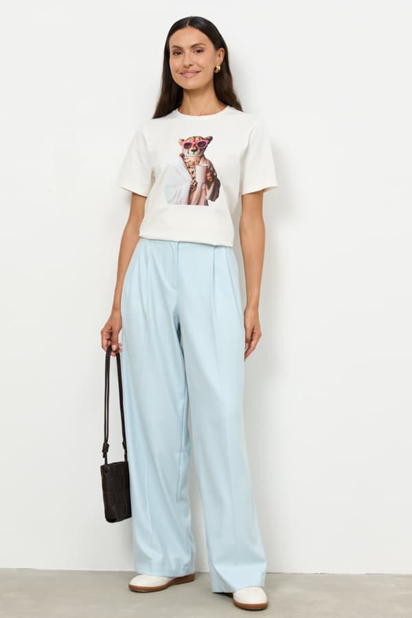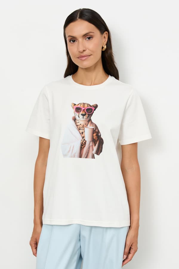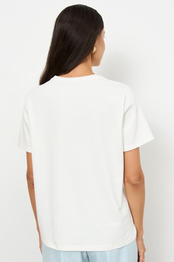 Футболка свободного силуэта из хлопкового эластичного полотна. Втачной короткий рукав. Круглый вырез горловины оформлен бейкой.