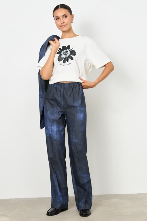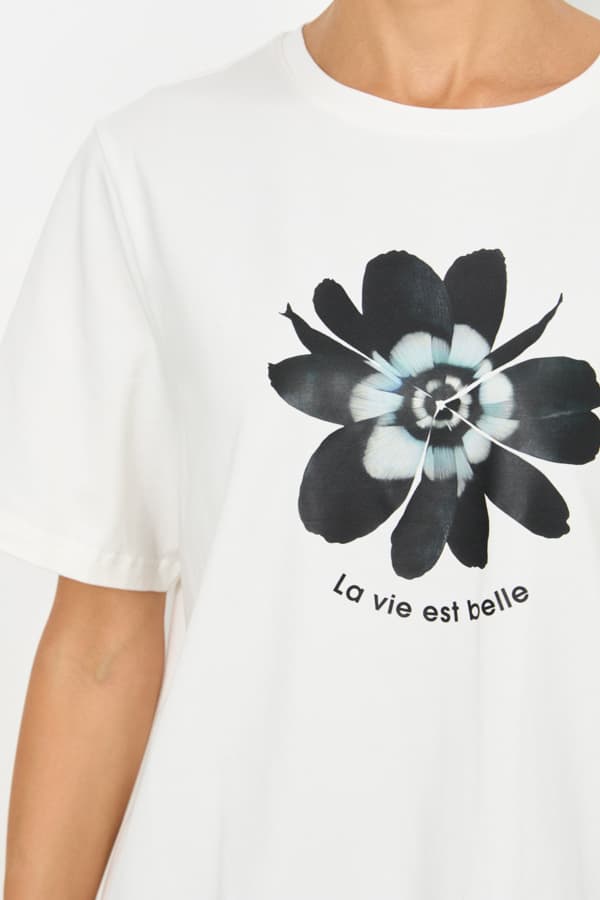 Футболка свободного силуэта из хлопкового эластичного полотна. Втачной короткий рукав. Круглый вырез горловины оформлен бейкой.