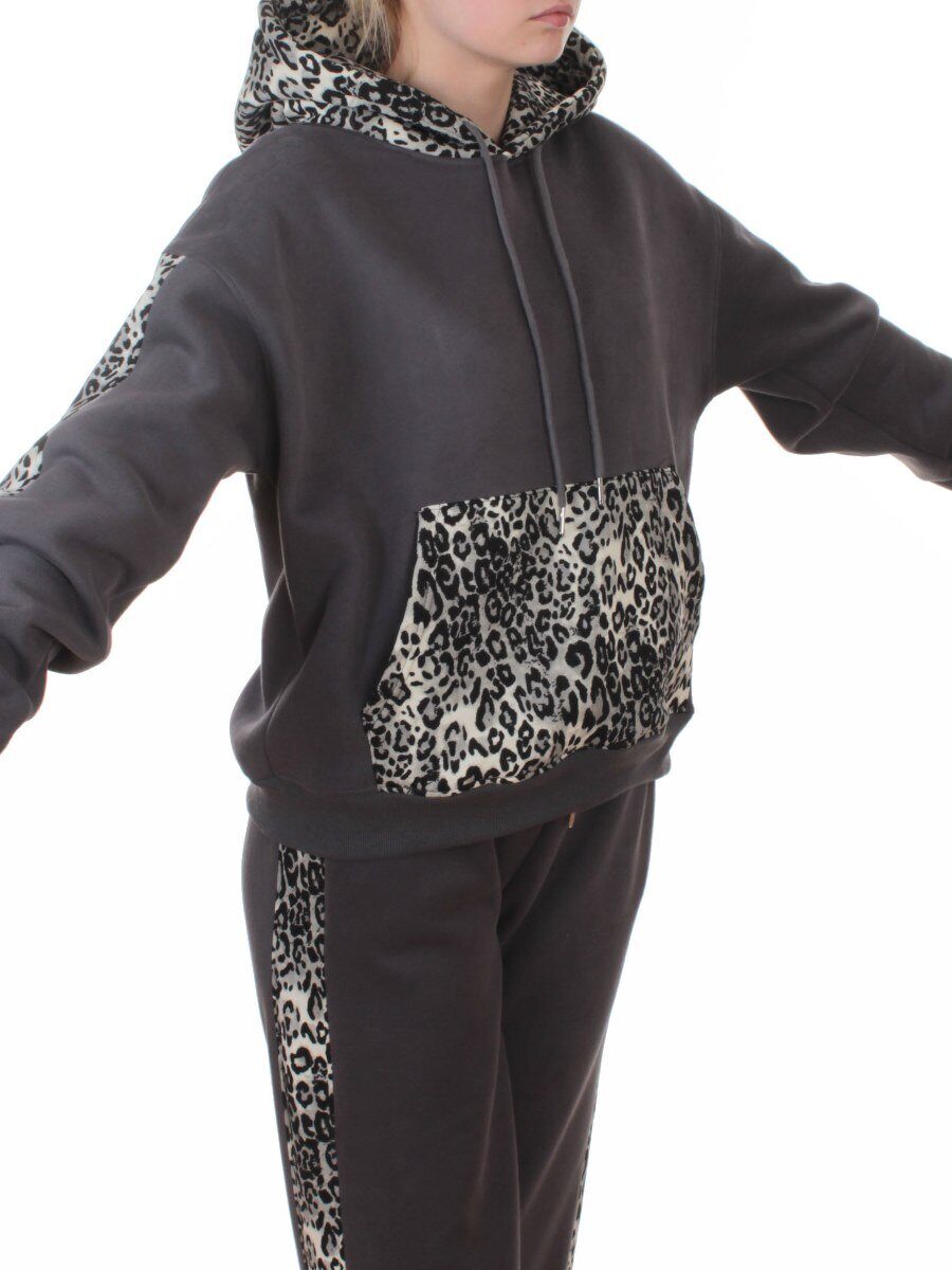 008 DK. GRAY/LEOPARD Костюм спортивный зимний женский (95% хлопок, 5% полиэстер)