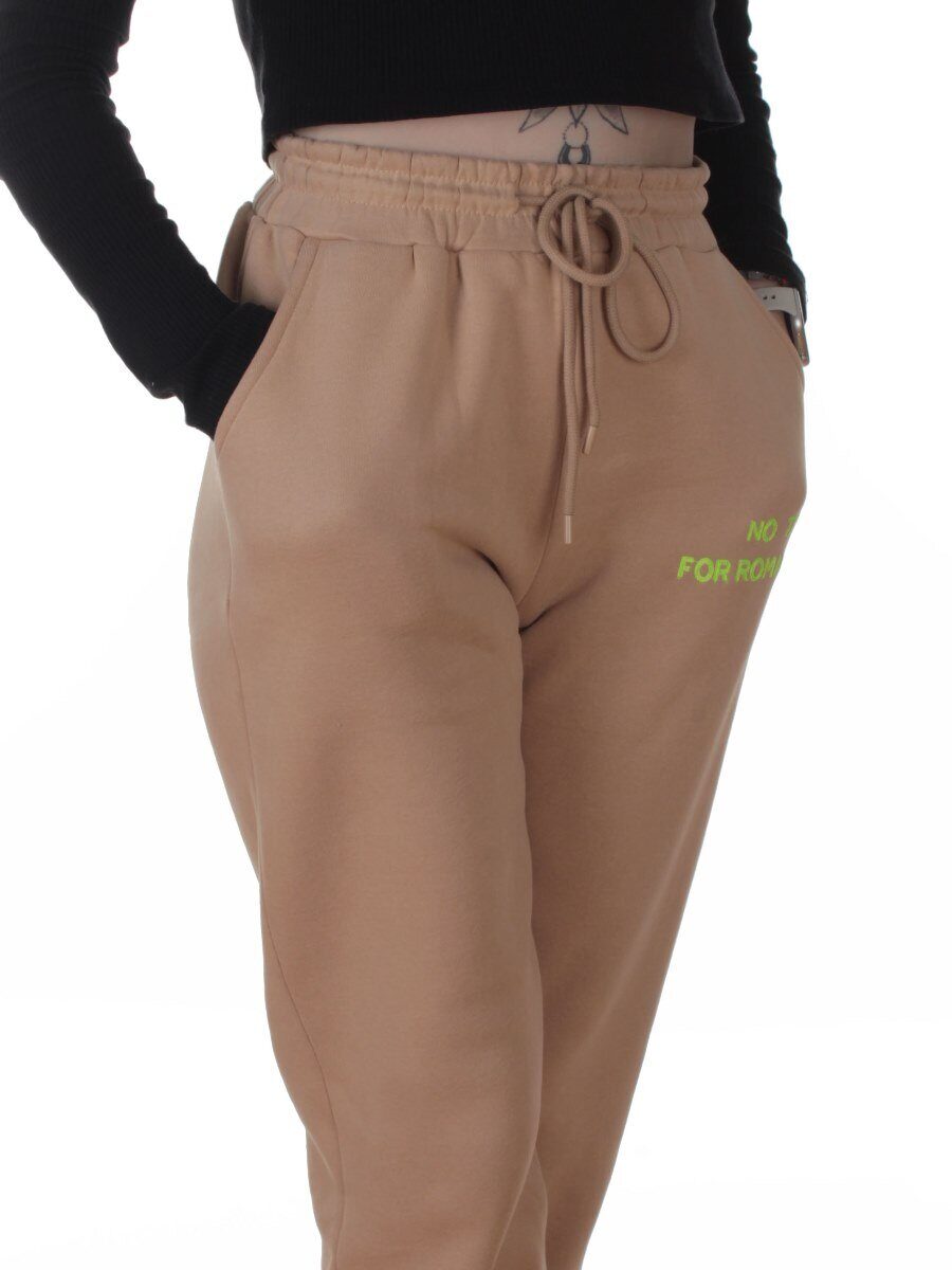 2621 BEIGE Штаны спортивные утепленные женские (85% хлопок, 10% полиэстер, 5% спандекс)