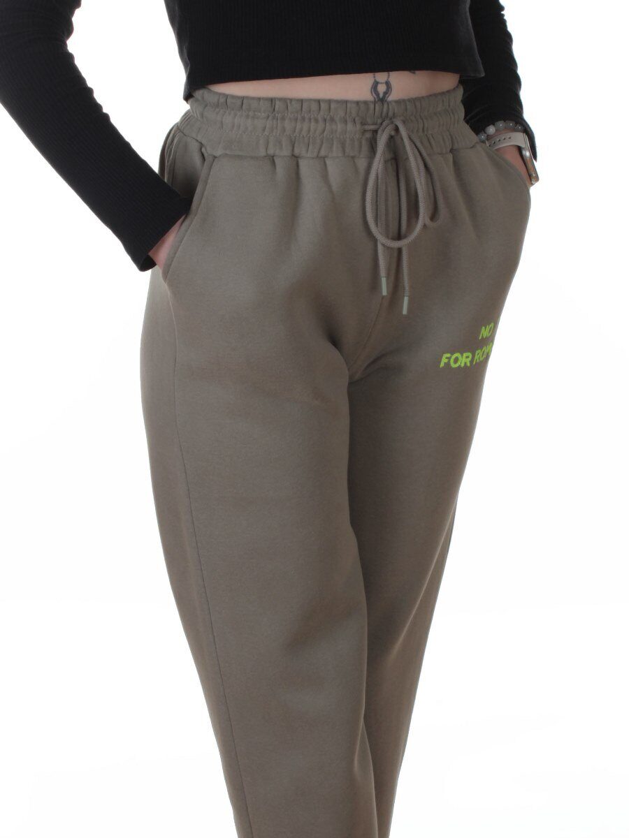 2621 GREEN Штаны спортивные утепленные женские (85% хлопок, 10% полиэстер, 5% спандекс)