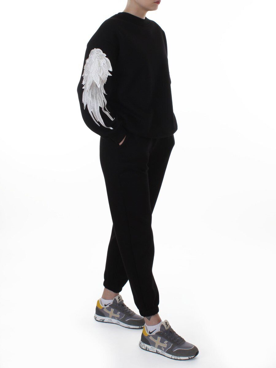 3416/3417 BLACK Костюм спортивный утепленный женский (95% хлопок, 5% эластан)
