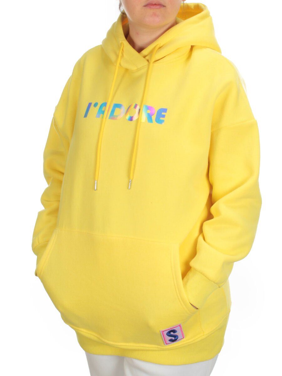 KD713 YELLOW Худи женское на флисе разм+ер свободный 50-52