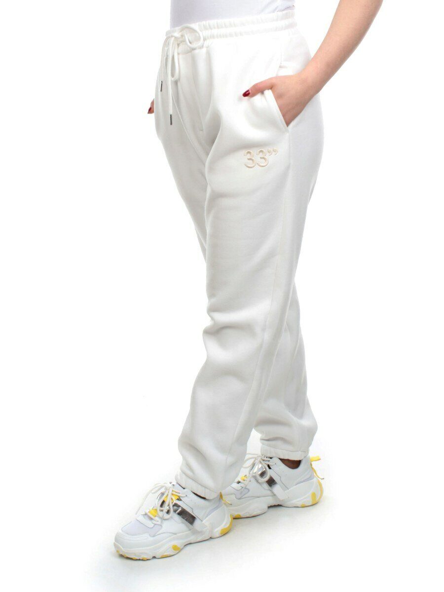 M039 WHITE Брюки спортивные женские на флисе (100% хлопок) 7986