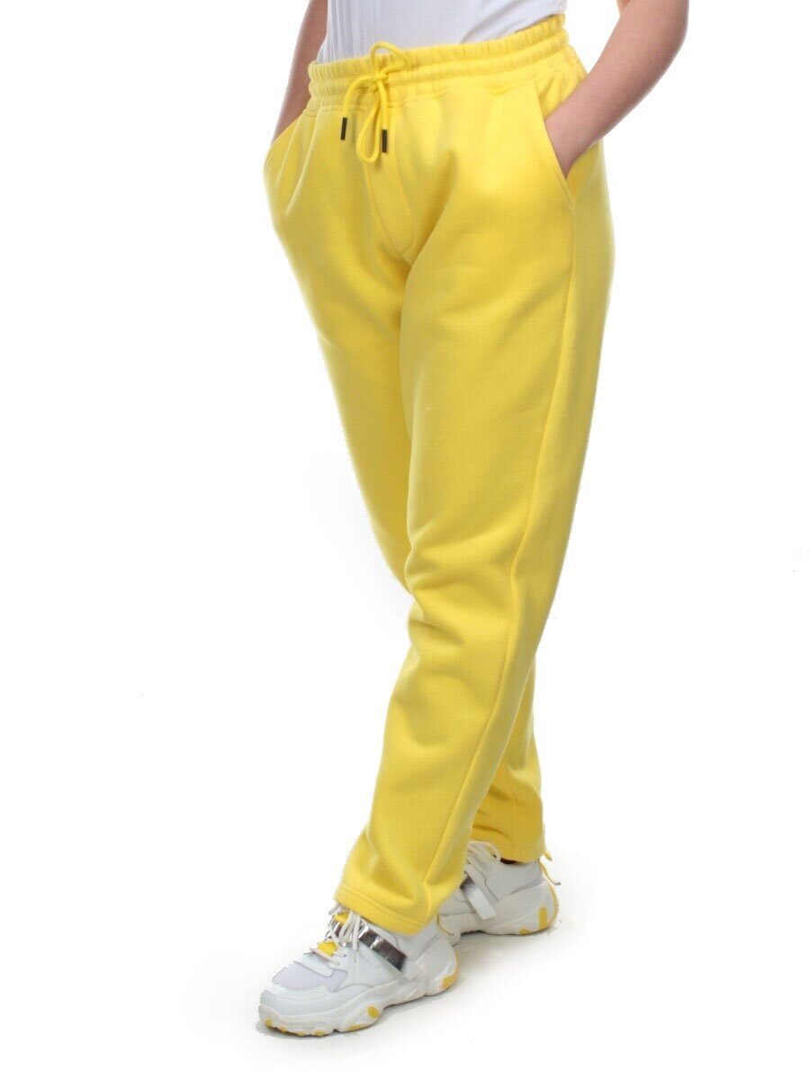 M045 YELLOW Брюки спортивные женские на флисе (100% хлопок) 7986