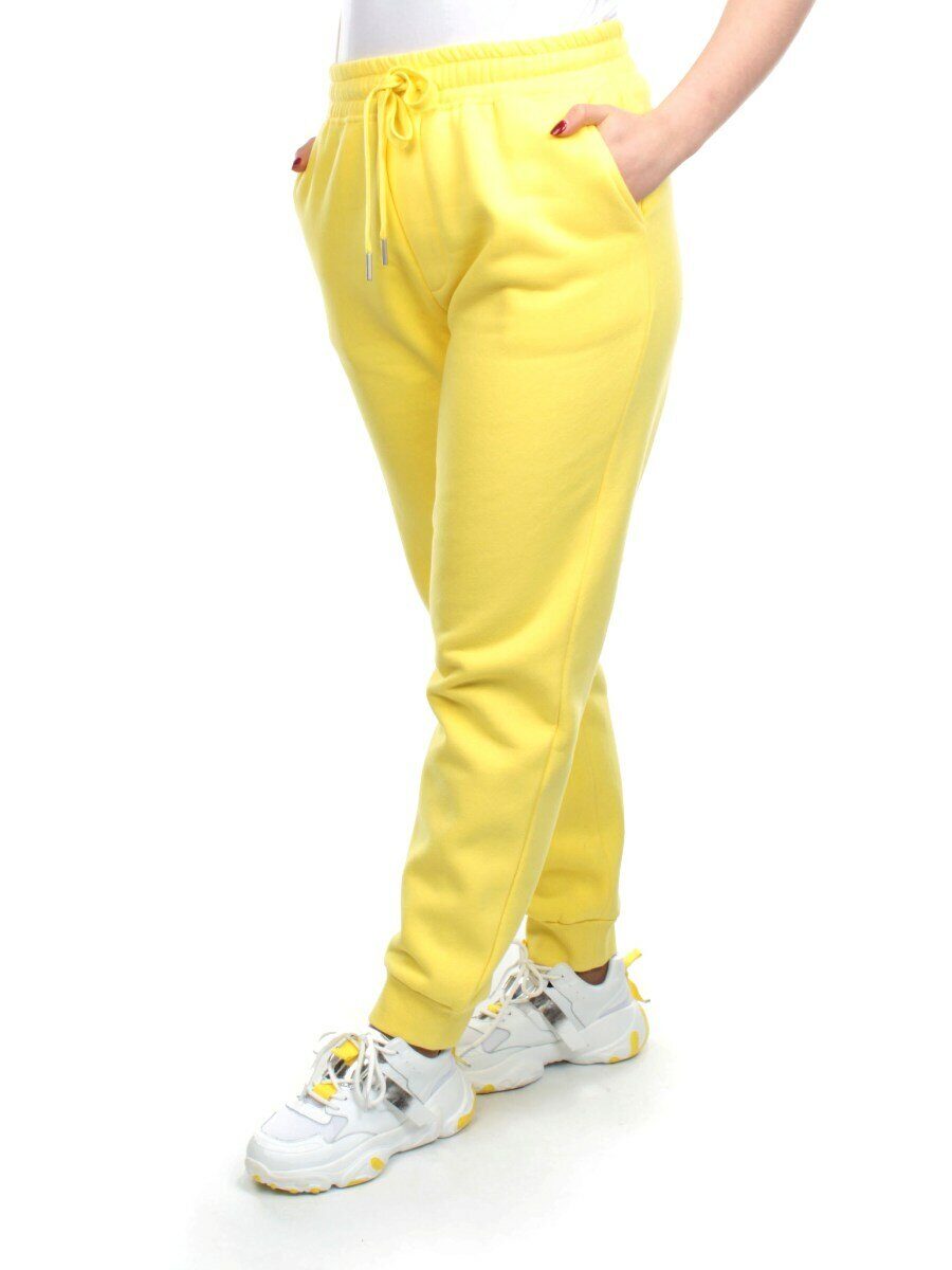 M057 YELLOW Брюки спортивные женские на флисе (100% хлопок) 7986