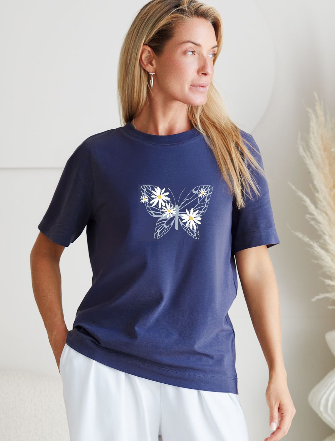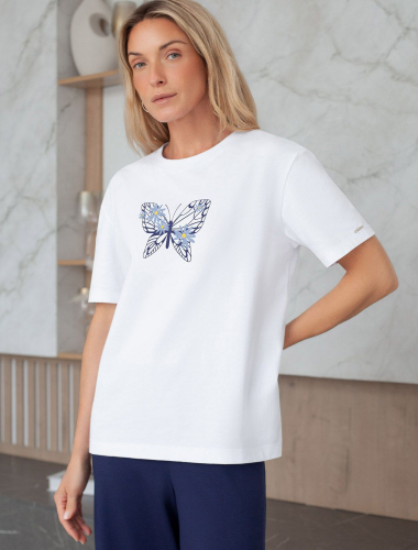 Особое внимание привлекает стильный принт в виде бабочки с цветами. Принт выполнен красками с устойчивым покрытием, который добавляет изделию оригинальности и позволяет выразить индивидуальность.