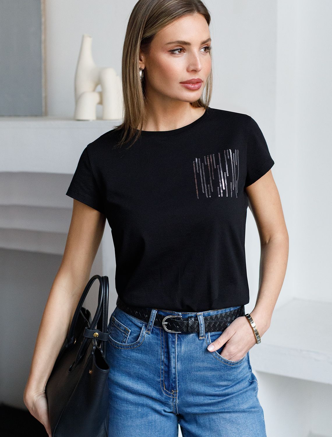 Эта нарядная футболка подходит для создания образа на каждый день и идеально подойдет на выход. Модель не мнется, что делает ее практичным вариантом для активных женщин, которые ценят стиль и удобство.