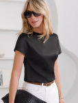 Эта нарядная футболка подходит для создания образа на каждый день и идеально подойдет на выход. Модель не мнется, что делает ее практичным вариантом для активных женщин, которые ценят стиль и удобство.