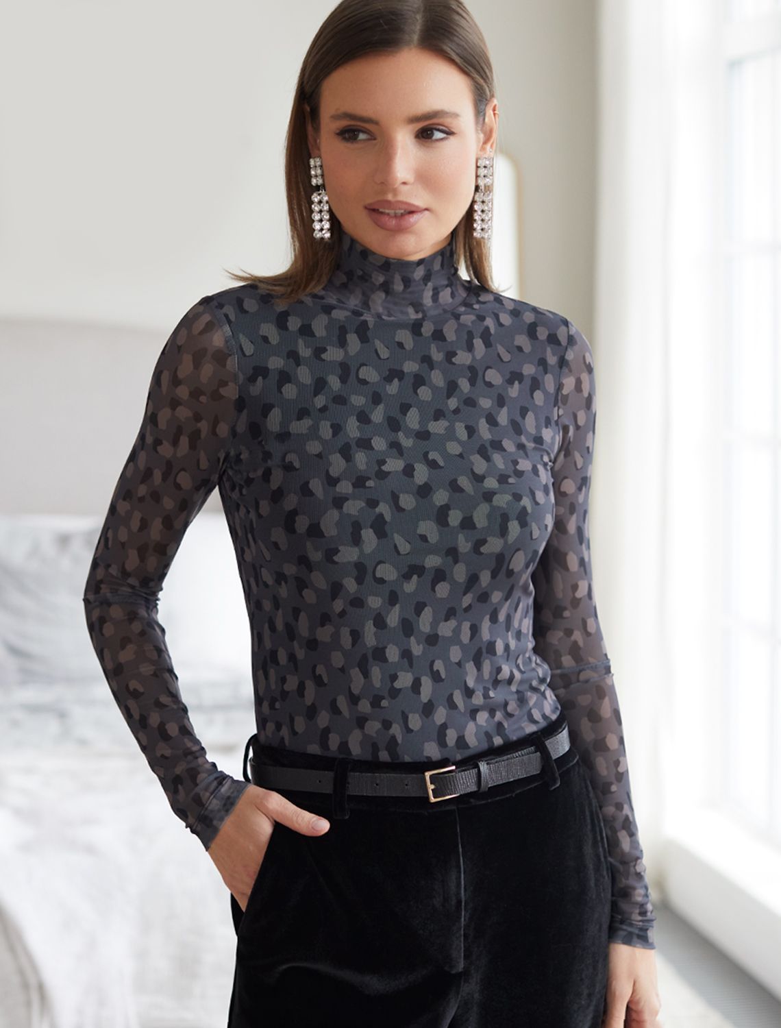 Элегантная модель из мягкой вискозы с эффектными деталями! Основная часть водолазки серо-коричневого цвета выполнена из плотного вискозного трикотажа, обеспечивающего комфорт, в то время как рукава из тонкой сетки создают стильный контраст. Двойной воротник с отворотом добавляет образу многослойность и универсальность. Модель отличается безупречной посадкой по фигуре!