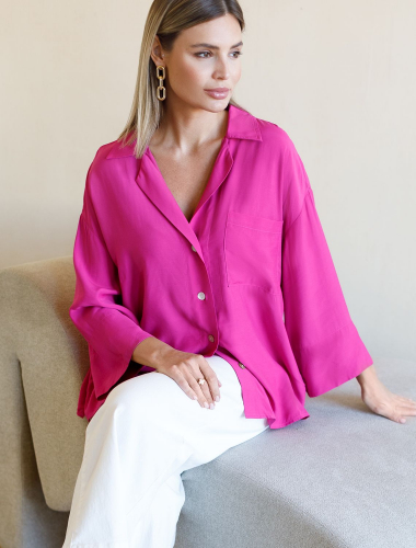 69%ПЭ 23%Вис 8%Лиоцелл (Вис) Топ с V-вырезом выполнен из тончайших нитей плотного сатина, плетение которых создает полуматовый блеск, напоминающий натуральный шёлк. Модель, скроенная по косой мягко, струится по телу и почти не мнется. Совет стилиста: сочетайте топ в костюме вместе с брюками D24.534 и юбкой D26.461 чтобы создать роскошный праздничный образ, или используйте как яркий акцент в базовом гардеробе, с вязаными вещами, денимом и эко-кожей.