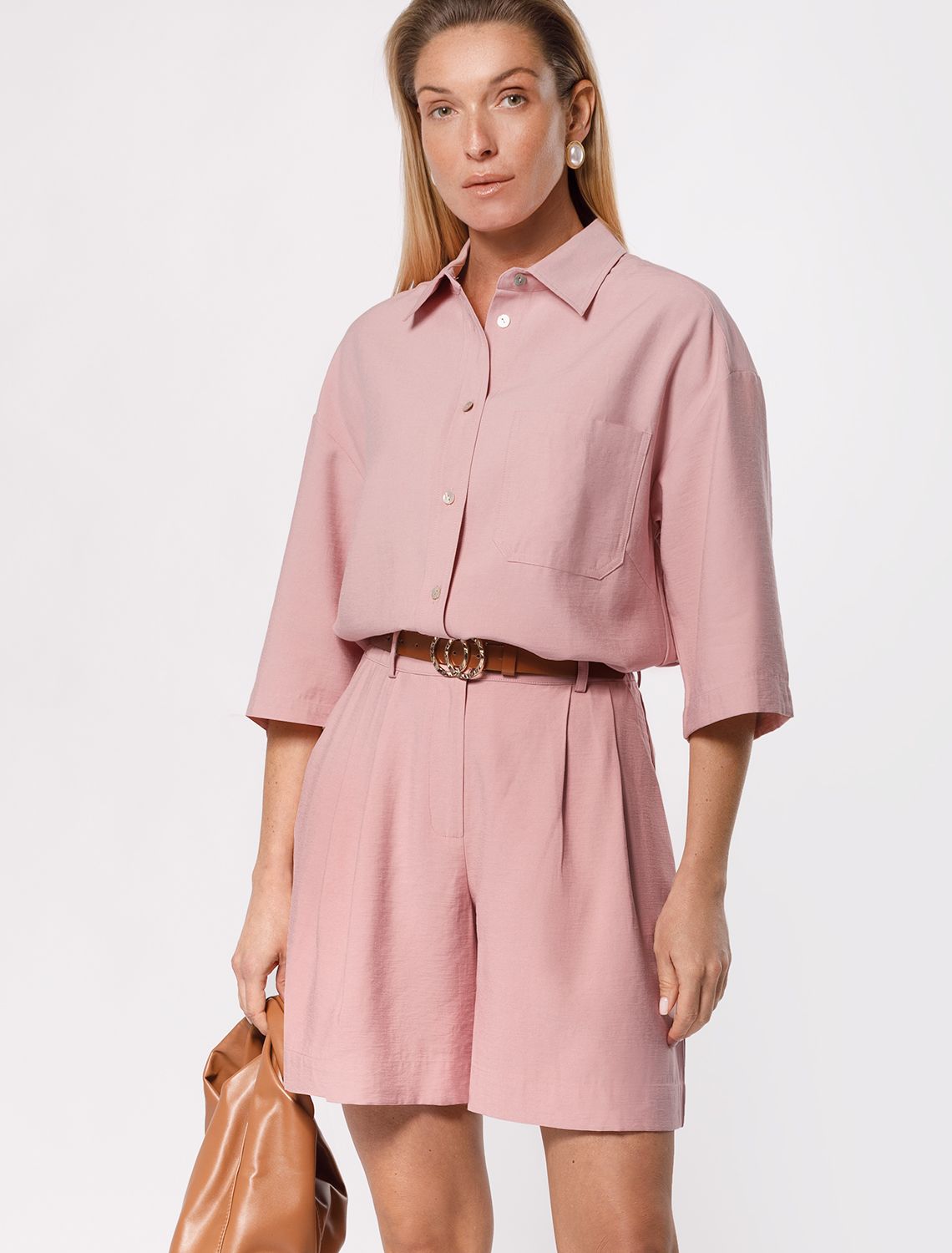 70%Лиоцелл (Вис) 30%ПЭ Шорты выполнены из плотного лиоцела. Добавление синтетических волокон в составе изделия предотвращает сминаемость. Эластичный пояс на резинке фиксирует изделие не сковывая движений. Есть дополнительные шлевки для ремня. Свободная модель дополнена боковыми карманами и металлическим логотипом бренда. Для создания завершенного образа сочетайте в костюме с топом D23.058, блузкой D28.054, D29.238, D29.239 и D29.240