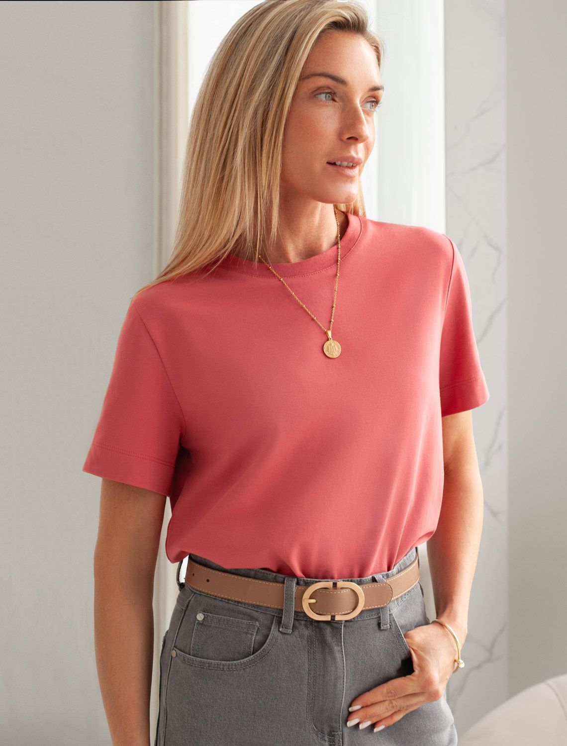 Рост 172, бюст 88, талия 64, бедра 88 Базовая однотонная футболка из премиального хлопка. Горловина выполнена из рибаны в тон изделия, Добавление эластана в состав изделия способствует формоустойчивости. Самое высокое качество хлопковых волокон обеспечивает комфорт в любое время года. Идеально держит форму и сохраняет внешний вид в течение долговременного использования. Универсальная базовая вещь для ваших стилистических решений. Изделие дополнено металлическим логотипом бренда на рукаве.
