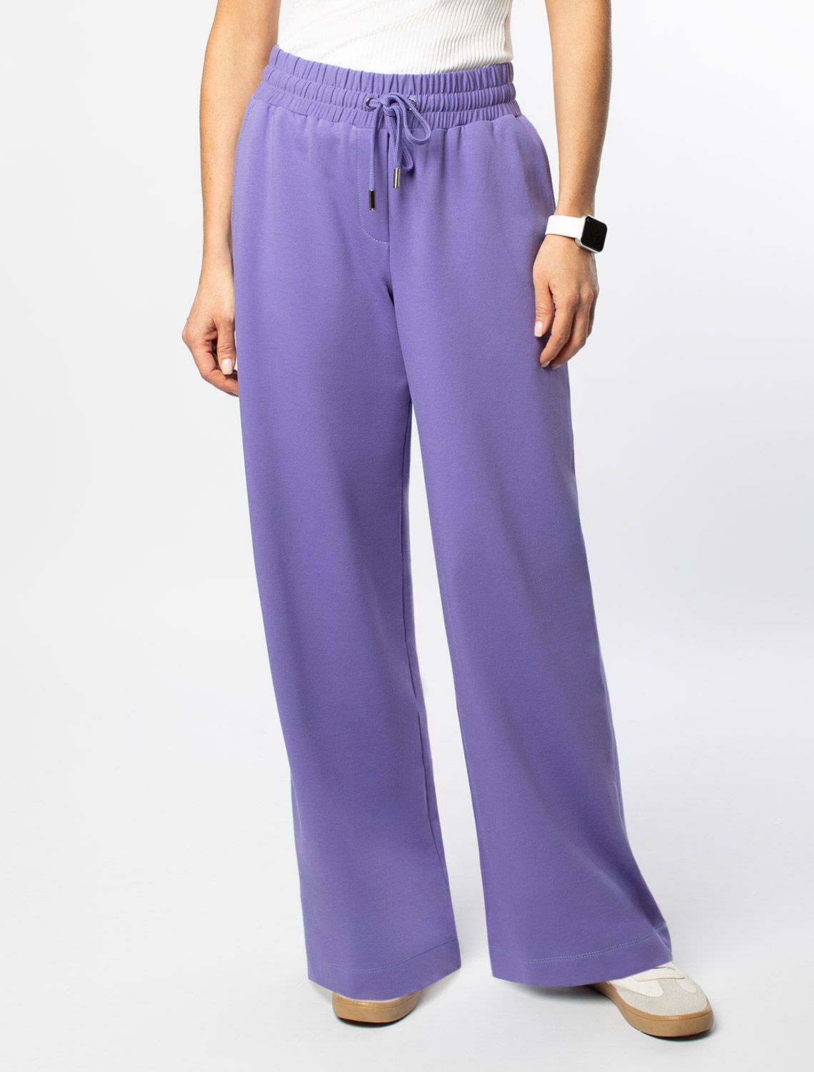 Рост 172, бюст 88, талия 64, бедра 88 Брюки выполнены из футера двухнитки с эластаном. Модель прямого кроя дополнена боковыми карманами и одним задним карманом. Пояс выполнен из эластичного трикотажа в рубчик. В пояс вставлен плоский хлопковый шнур в тон изделия с серебристыми наконечниками. Изделие дополнено металлическим логотипом бренда. Сочетается в костюме с жакетом D49.078, джемпером D49.079, D49.080 и футболкой D49.081
