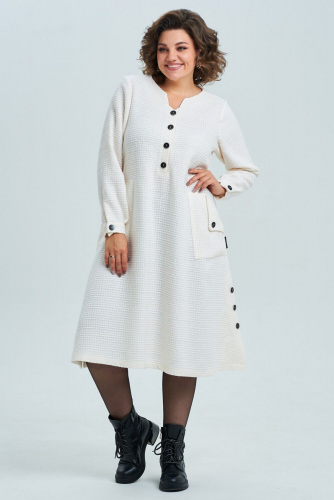 Комбинезон отрезной по линии талии с притачным поясом и съёмным завязывающимся поясом по линии талии. С застёжкой на потайную тесьму-молнию по среднему шву спинки. Лиф переда на запах и с рельефными швами. Лиф спинки с талевыми выточками и средним швом. Брюки полуприлегающие по талии и бёдрам и прямые книзу. По переду отлетные детали вставлены в боковые и по линии талии имитирующие платье. Передние и задние части с талевыми выточками.