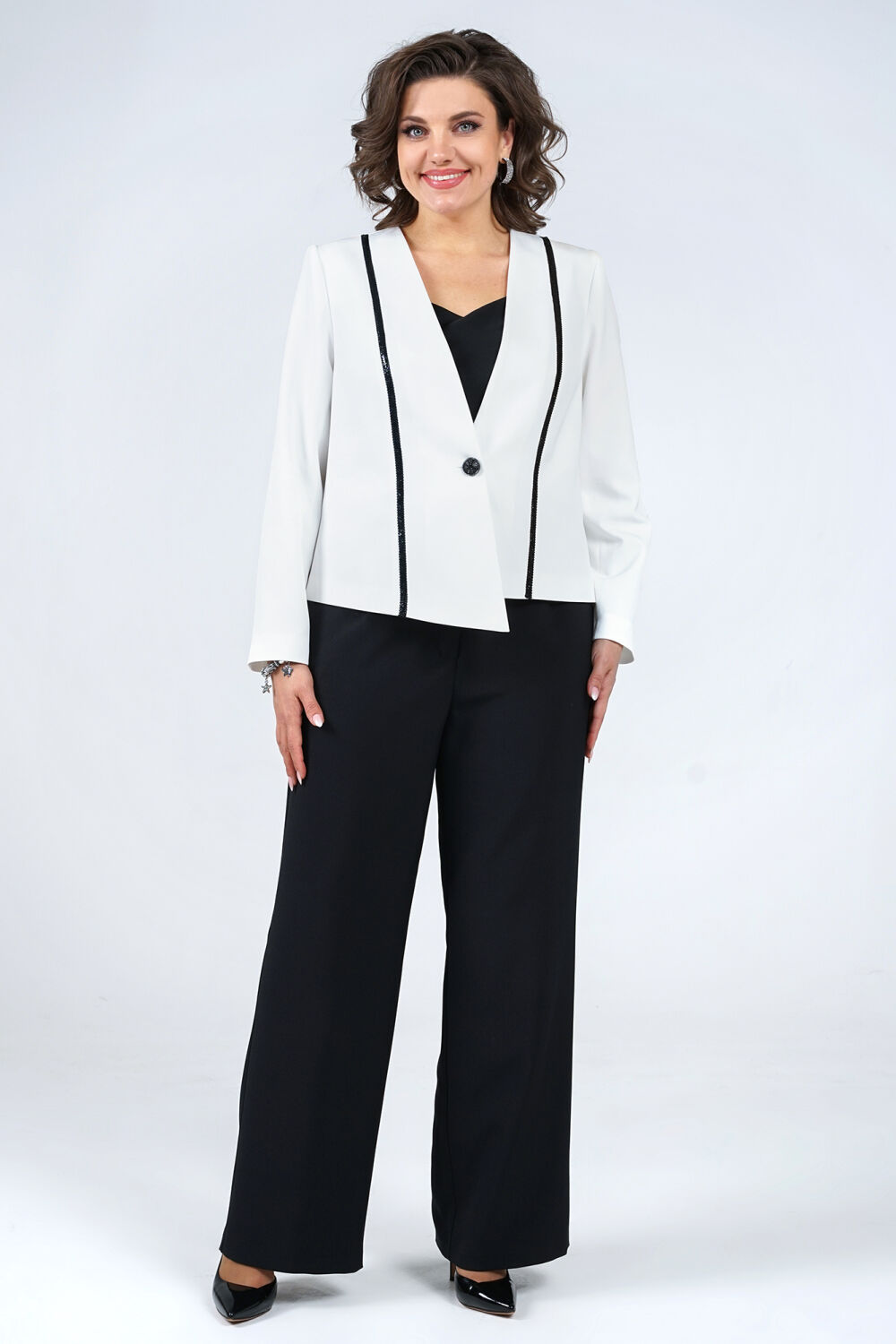 Комплект женский 3–х предметный состоит из жакета, топа и брюк.