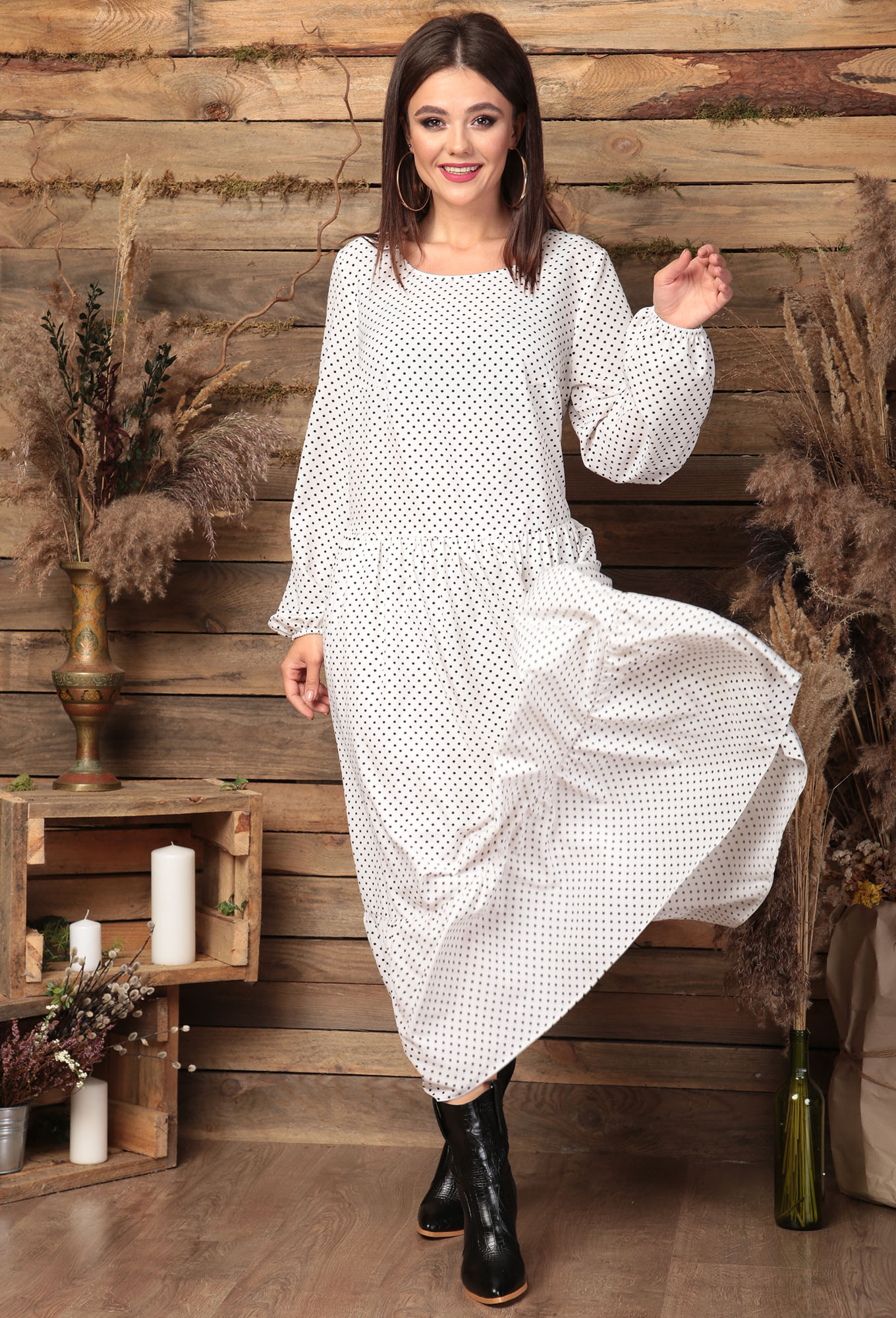 ст. цена2499руб.! Платье Anastasia 475 белый горох