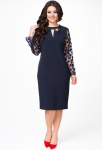 Платье А-образного силуэта, длинной ниже колена. Перед платья с потайной застежкой на петли и пуговицы. Горловина круглой формы с воротником рубашечного типа на отрезной стойке. Спинка цельная. Пройма углубленной формы, рукав рубашечного типа, одношовный, длинной ¾. По низу рукава обработана кулиса.