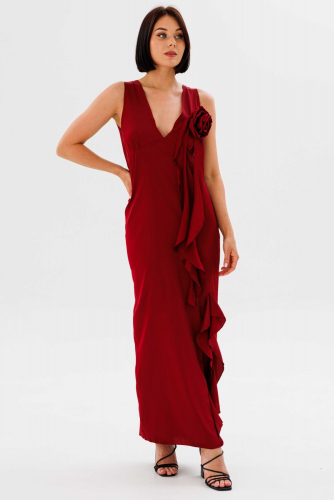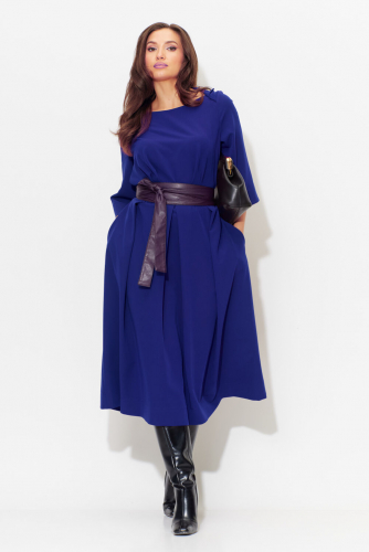 Шикарное женское платье идеально на любую погоду: под босоноржки либо под сапоги и пальто. Отличный вариант универсального изделия: подойдет как для повседневного и офисного гардероба, так и для праздничного выхода.  Отрезное по линии талии. По полочке объем груди создается за счет направленных складок из подреза. Объем юбки создается за счет центральной встречной и 2-х односторонних складок. По бокам в юбке- карманы. Рукав втачной,  3/4 длинны с отворотом.  Вырез горловины лодочка с отложным воротником. В комплекте съемный пояс. Длина спинки до подреза -45 см., длина юбки -77см. Длина рукава-44 см.