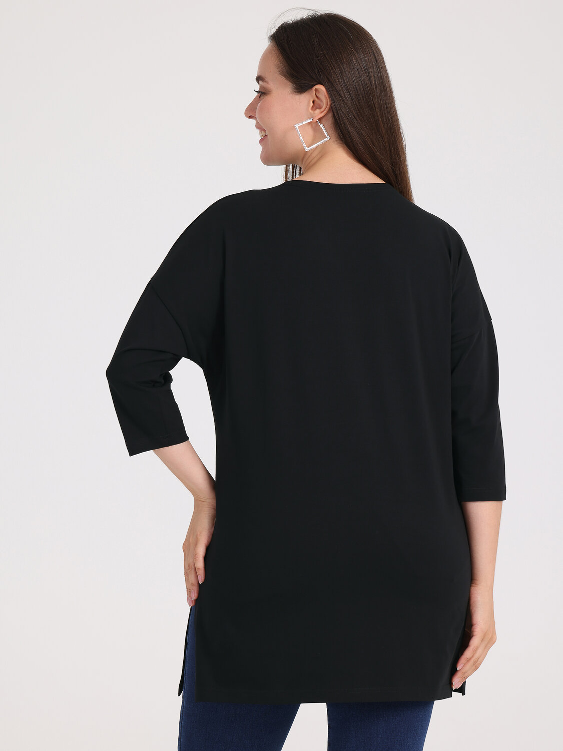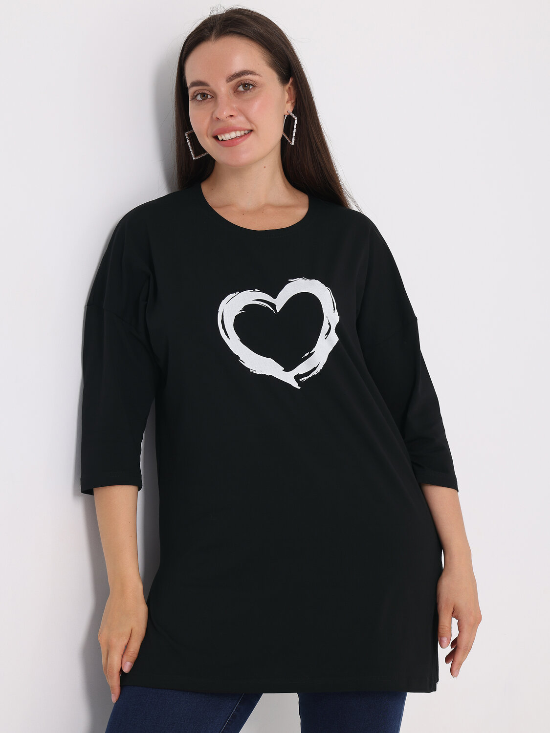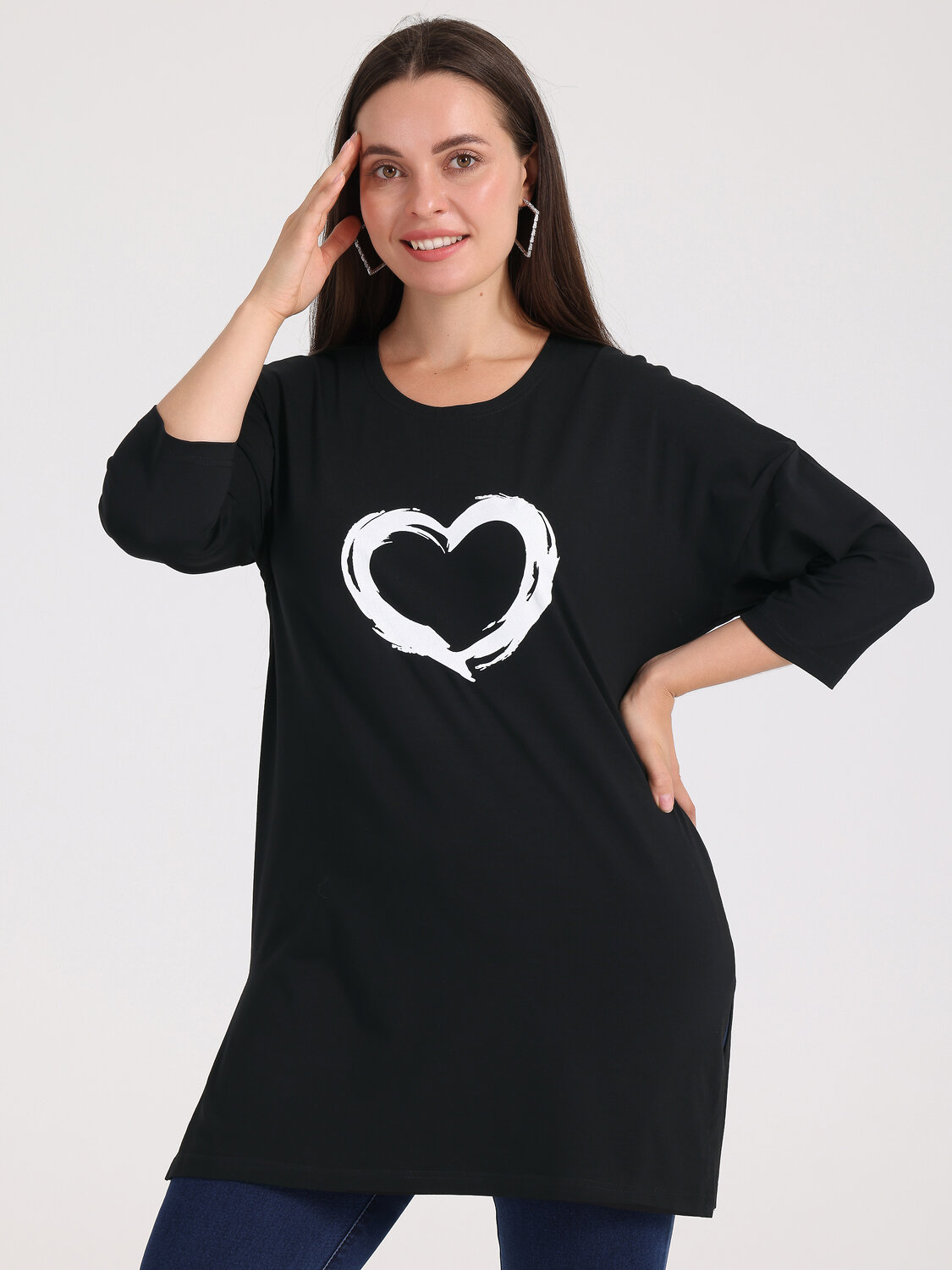 Стильная женская туника выполнена из кулира - легкого хлопкового полотна с лайкрой. Свободный крой, рукава длиной 3/4 со спущенной линией плеча, разрезы по бокам. Украшена принтом. Уход: только машинная стирка (руками не стирать!) при температуре 40 градусов, без предварительного замачивания. Изделия с печатью и декором перед стиркой необходимо вывернуть на изнаночную сторону.