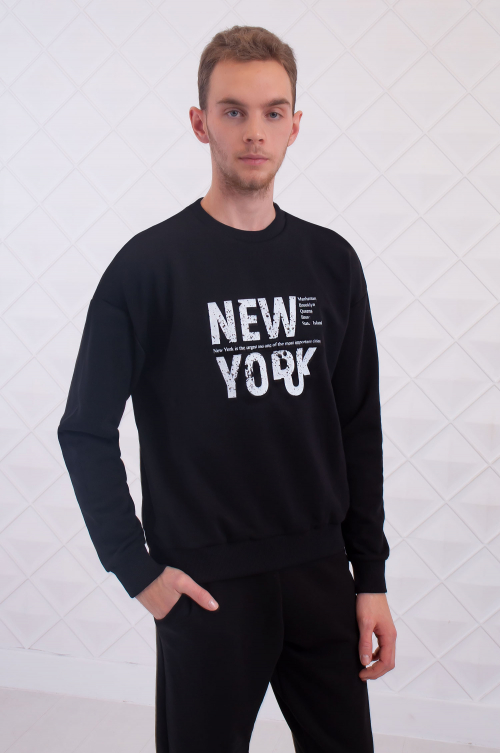 Свитшот мужской выполнен из футера трехнитки петли, плотность полотна 320 г.