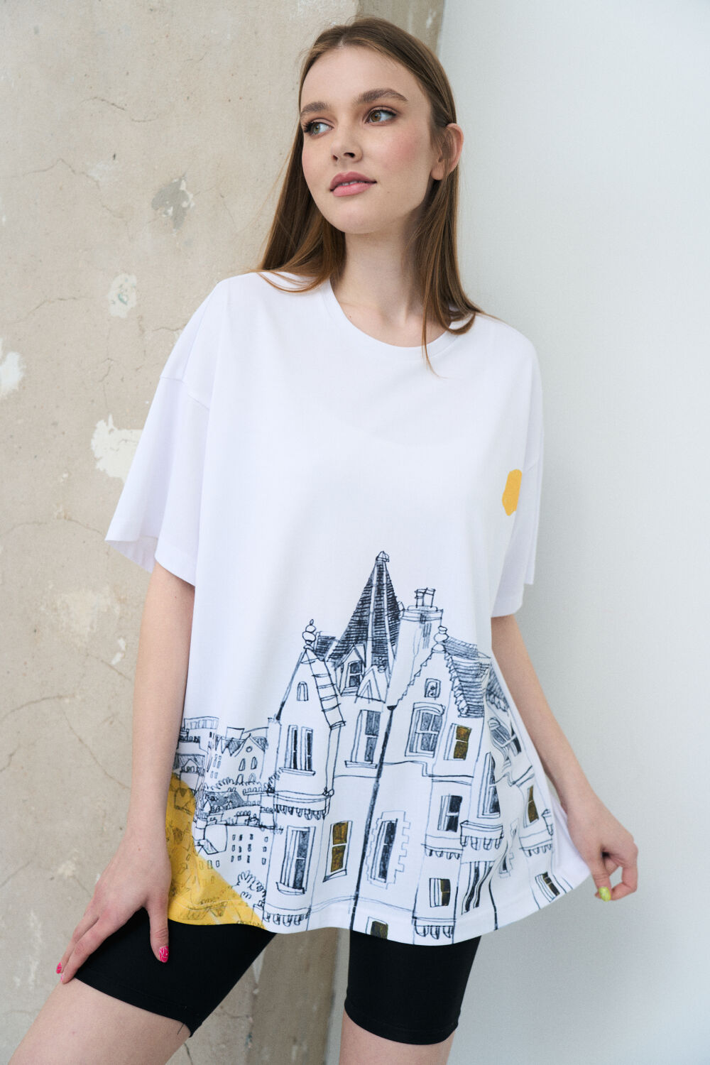 Нежная футболка, созданная для прекрасных представительниц женского пола. Она призвана оберегать и окутывать свою обладательницу ласковым покрывалом комфорта и уюта. Это наряд, который с лёгкостью преобразит повседневный образ, делая его стильным и неповторимым. Идеально подходящая для домашнего отдыха, эта футболка с принтом заполняет атмосферу теплотой и уютом. Она словно объятия близких людей в холодный день - нежные, ласковые и безгранично уютные. Белая футболка напоминает свежий утренний ветерок, приносящий радость и новизну. Оверсайз крой футболки добавляет игривости и непосредственности, подчеркивая естественную женскую красоту. Это одежда для тех, кто ценит свободу движений и безупречный стиль в одном флаконе. Принт на футболке - как отпечаток индивидуальности каждой женщины. Он делает этот наряд по-настоящему уникальным, отражая мир ее мыслей и чувств в ярких красках. Общая одежда - это нечто большее, чем просто наряд. Это объединение комфорта и стиля, функциональности и элегантности. Футболка для женщин больших размеров - это забота о каждой даме огромной дружной семьи моды. Созданная специально для всех возможных случаев жизни: будь то уютный вечер дома или прогулка по городским улицам - эта футболка является верным спутником каждой женщины.
