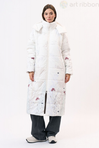 Куртка прямого силуэта изготовлена из непродуваемой плащевой ткани, на синтепоне. На переде обработаны нагрудные накладные карманы с клапанами и прорезные карманы с листочками. Рукав длинный, спущенный с манжетой, застегивающеся на кнопку. Воротник - стояче-отложной. Застежка центральная на кнопках. Возможно отличие фотографии по оттенку, связанное с разной цветопередачей монитора.