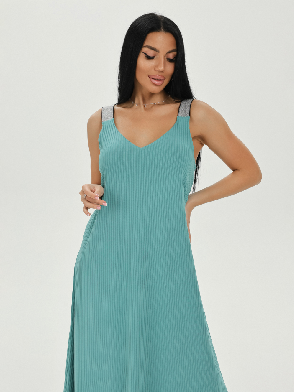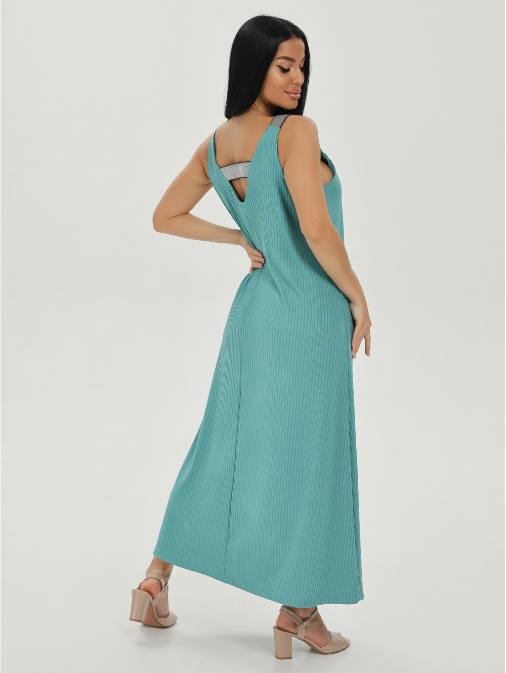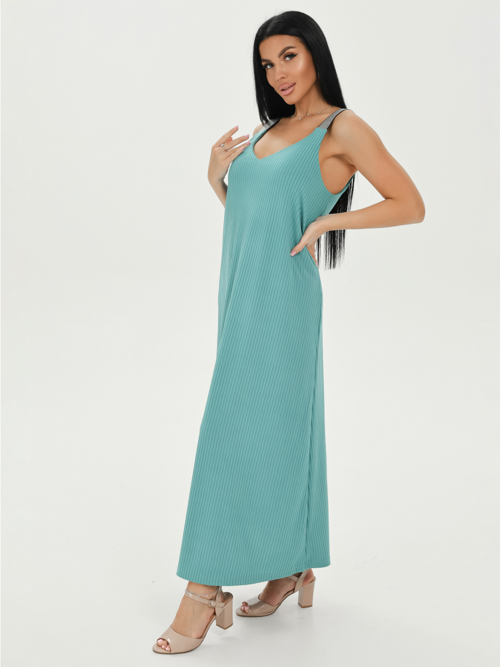 Сарафан женский А-образного силуэта, длиной до щиколотки. Вырез горловины на полочке и спинке V- образный.