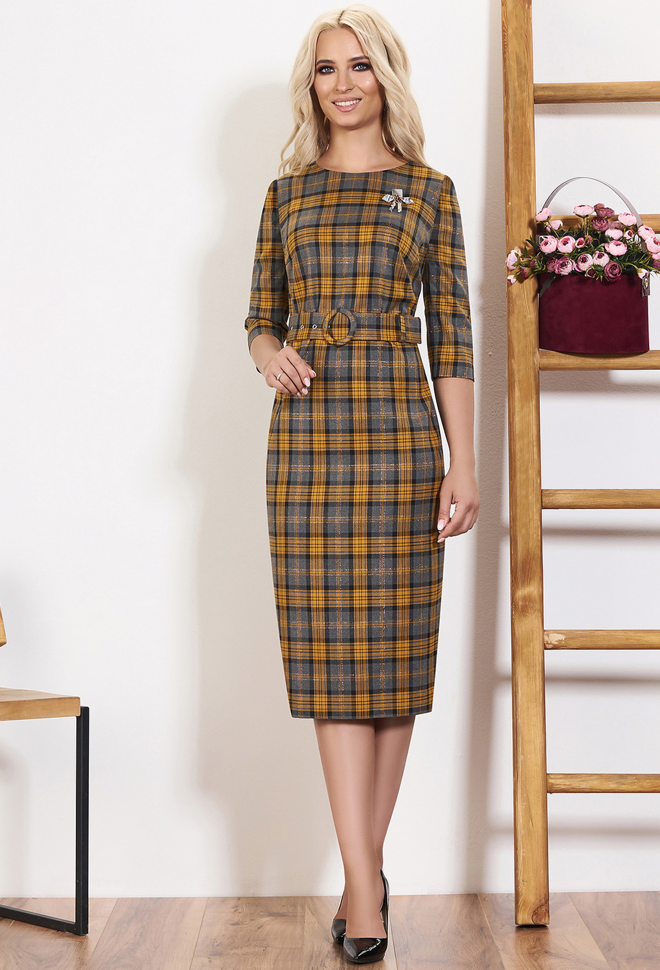 ст. цена2499руб.! Платье Bazalini 3490 горчица клетка