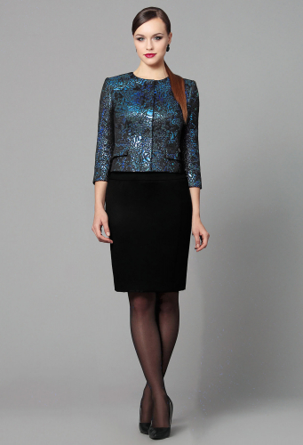 Тип ткани: жакет- ПЭ76% Хлопок10% Металлич.нить 14%юбка- ПЭ63% Вискоза 34% Спандекс 3%