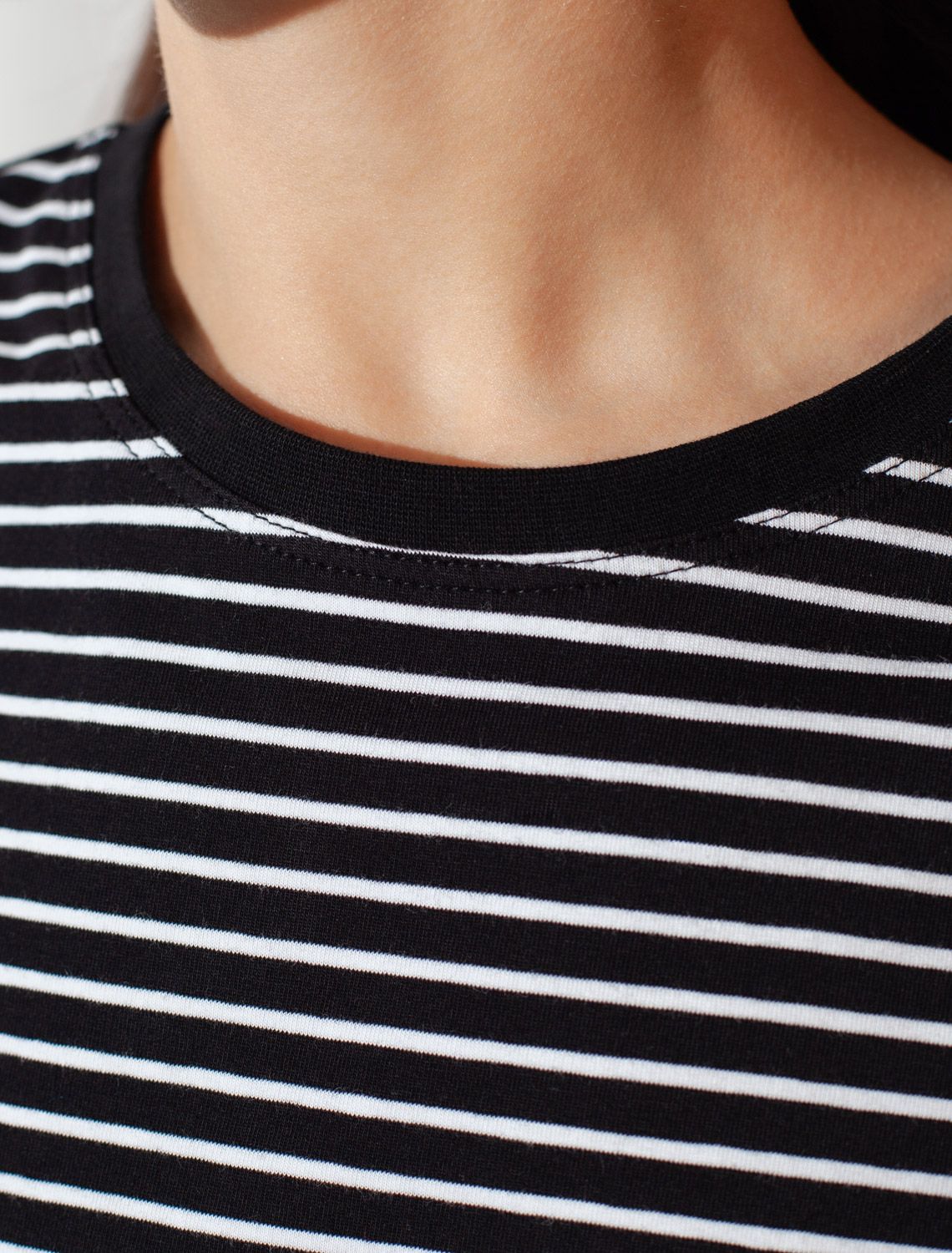 Базовая футболка в полоску полуприлегающая из премиального хлопка с эластаном D49.155 черный-белый