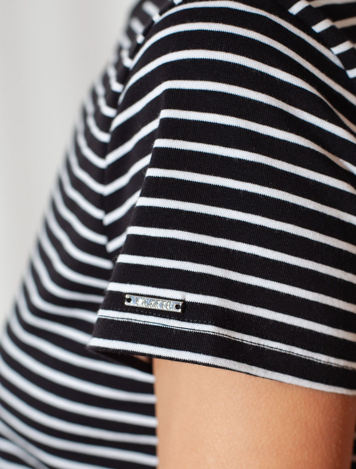 Стильная и модная женская футболка в тонкую черно-белую полоску станет отличным дополнением к вашему гардеробу. Футболка плотностью 170 Г/м2 изготовлена из премиального хлопка с добавлением эластана. Добавление эластана в состав изделия способствует формоустойчивости. Эта классическая футболка подходит для создания кэжуал образа на каждый день и идеально подойдет для работы. Модель не мнется, что делает ее практичным вариантом для активных женщин, которые ценят стиль и удобство. Благодаря современному принту полоска эта футболка легко комбинируется с различными элементами гардероба. Она станет универсальным решением для тех, кто предпочитает комфортный стиль casual. Повседневная футболка подчеркнет вашу индивидуальность и позволит вам выглядеть привлекательно в любой ситуации. Легкость в уходе и высокая износостойкость делают ее незаменимой вещью в вашем гардеробе. Одевайте эту модель как на работу, так и на встречу с друзьями — она всегда будет уместна! Стильная и практичная модель с простым кроем и лаконичным дизайном - идеальный вариант для тех, кто ценит качество, минимализм и классический стиль в одежде.