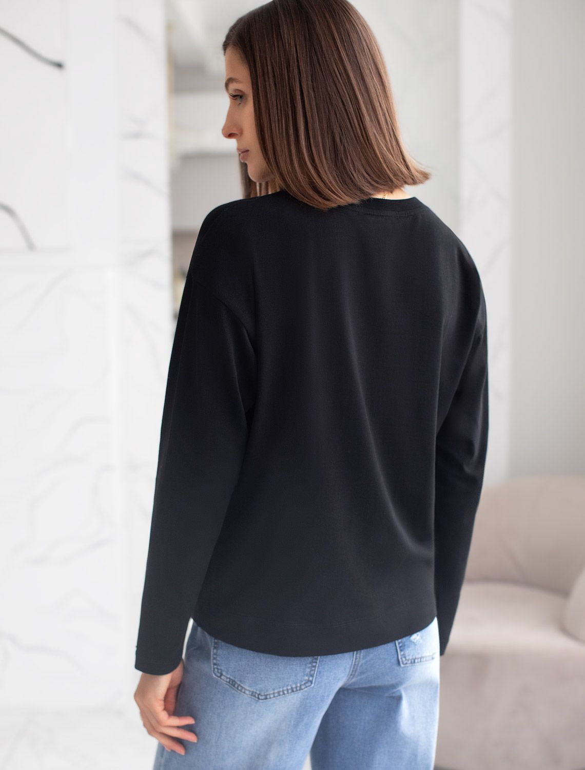 Свободный лонгслив черного цвета с длинным рукавом выполнен из премиального хлопка с добавлением эластана, что обеспечивает комфорт и приятные тактильные ощущения. Однотонная расцветка и круглый ворот создают стильный и универсальный образ, который подойдет для повседневного использования. Спущенная линия плеча придает лонгу современный и расслабленный силуэт. Такой лонгслив идеально подходит для весеннего и летнего сезона благодаря легкой и дышащей ткани. Большие размеры позволяют выбрать оптимальный вариант на любую фигуру, обеспечивая свободу движений и удобство на каждый день. Этот комфортный лонгслив станет отличной базой в гардеробе, сочетаясь с различными стилями одежды и создавая простой, но эффектный образ. черный