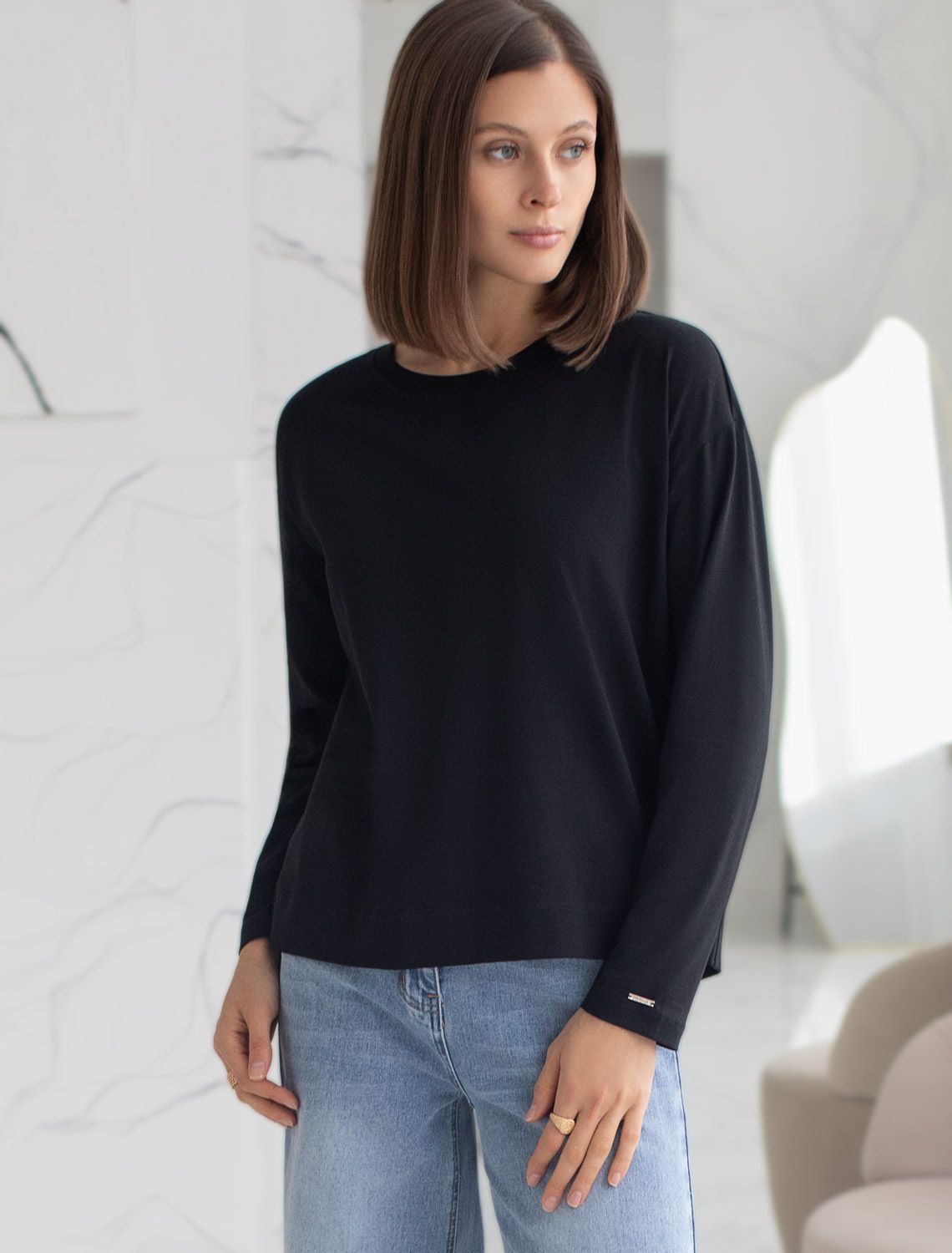 Базовый лонгслив из премиального хлопка с эластаном